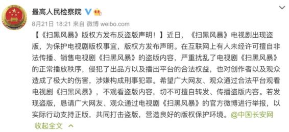 违法!《扫黑风暴》遭遇“盗版风暴”