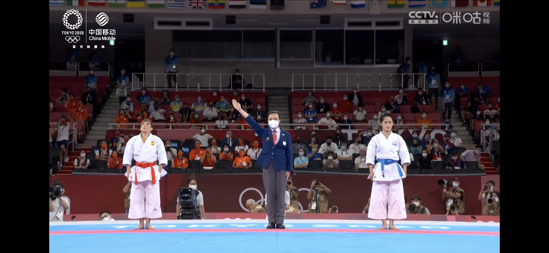 比较幸运的是,奥运会历史上首块空手道金牌诞生在女子个人型比赛中,马俊婷是当场比赛的主裁判,并宣告比赛结果。“比赛场地从这头走到那头,总共12米,就像很多运动员有时候会激动地亲吻场地一样,我当时虽然很镇定,但内心也是激动不已,与两位运动员有过眼神的交汇,看到两个人渴望、焦虑、期盼的眼神,我觉得责任很重大。这是世空联成立50年以来的第一块奥运金牌,隔离期间我把这段视频拿出来反复看,依然会情不自禁地潸然泪下,我从事空手道运动19年,才有了这样一个机会。”