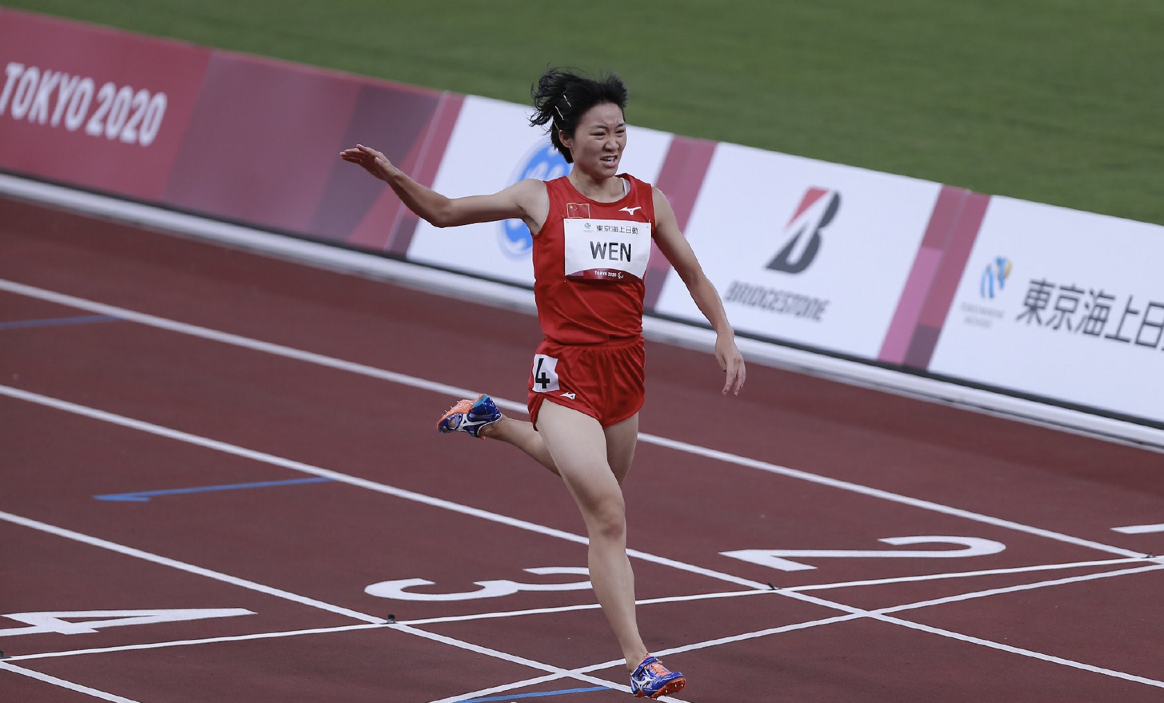 田径女子200米T37决赛,文晓燕以26秒58的成绩打破自己保持的世界纪录夺冠。