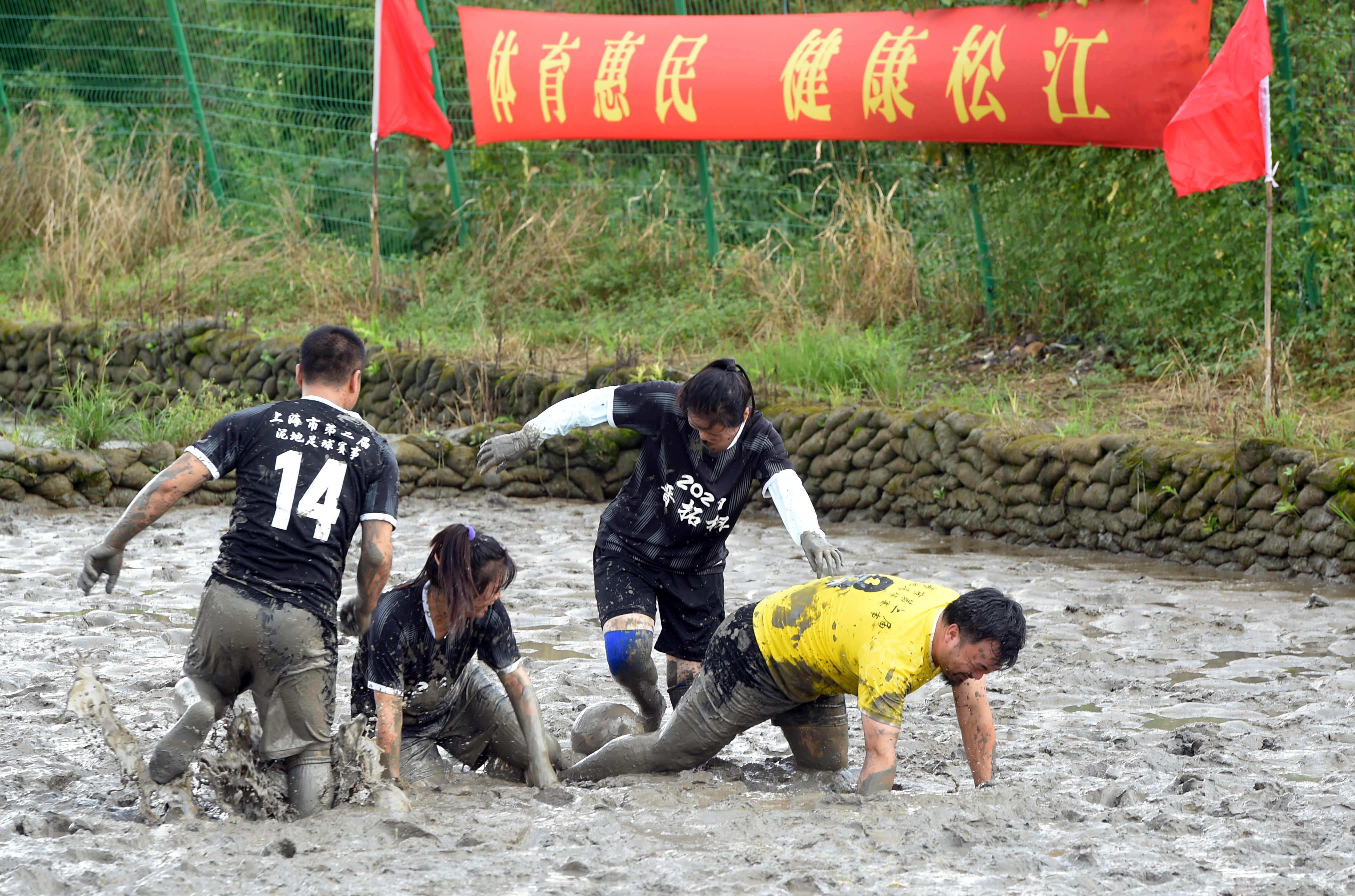 干净衣服下去,变一个“泥人”出来……9月11日,上海市第二届“晋拓杯”泥地足球赛在松江新浜泥地足球公园举行,8支参赛队伍与对手比拼,更与自己对抗,虽然深一脚、浅一脚,但满是欢声笑语,忙碌了一周的工作压力也随着一脚脚飞起的泥水而烟消云散。
