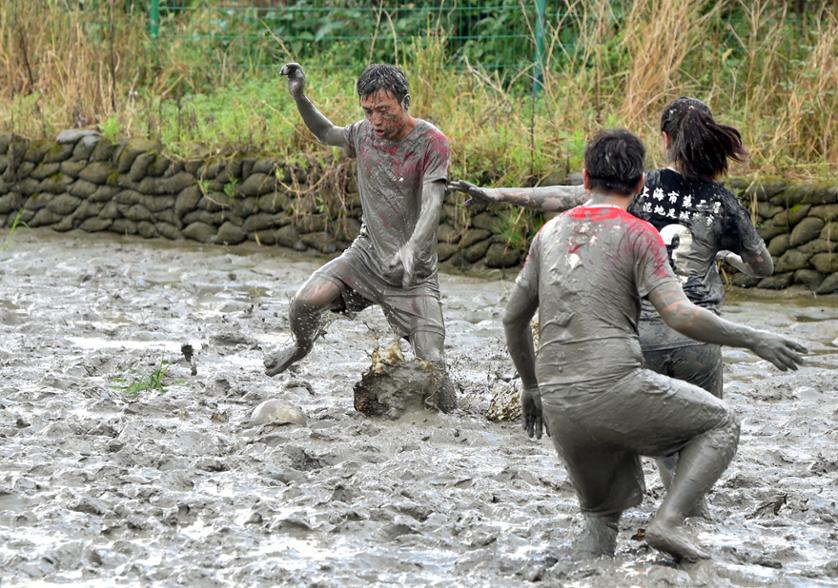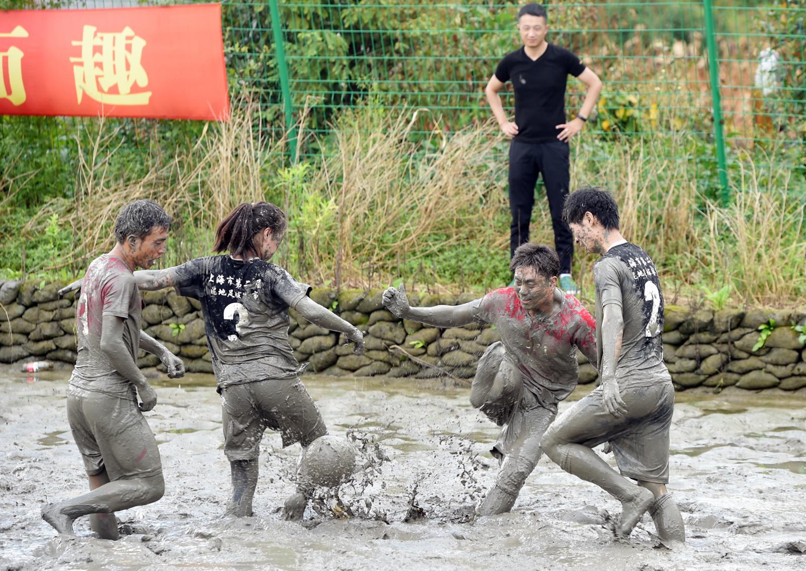 记者实际体验发现,因为场地里减少了泥水存量,整个比赛更有趣味、更接底气,不管你在常规场地的技术有多好,哪怕你是梅西,也只能望球兴叹,想要奔跑,却可能一脚陷进泥里,球员的每一次摔倒、每一脚踢空乃至于每一块飞扬的泥巴,都能引起旁人的哈哈大笑。