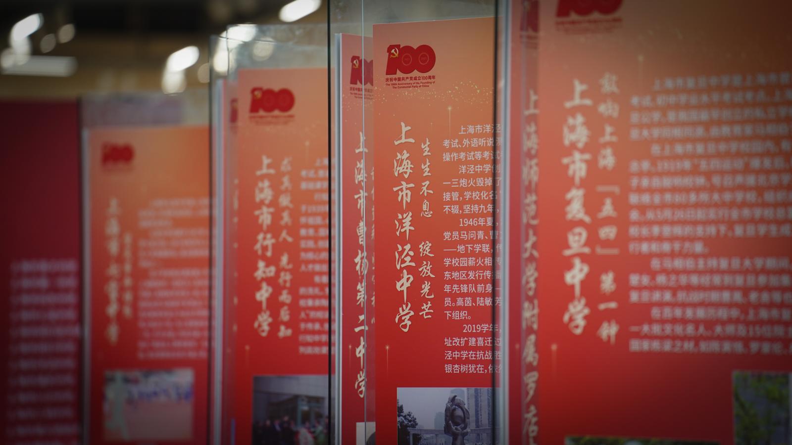 国庆长假的各类展览丰富多彩,但在商场里举行的一场展览主题鲜明,格外引人。“探寻考点里的红色经典 聆听招生里的红色故事”——上海市教育考试院庆祝中国共产党成立100周年专题巡展正在上海环球港中央厅西侧展出。