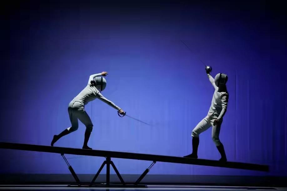 但是,怎么从击剑标志性的视觉效果中转化出舞蹈语言,是侯莹面对的首要难题?“我希望舞者既是运动员又是舞者,舞台上演员要有准专业击剑水平。”为此,侯莹特别邀请来了北京击剑队的教练田雨川和国家一级裁判梁佳月,为舞者们进行了长达3个月的专业击剑训练。