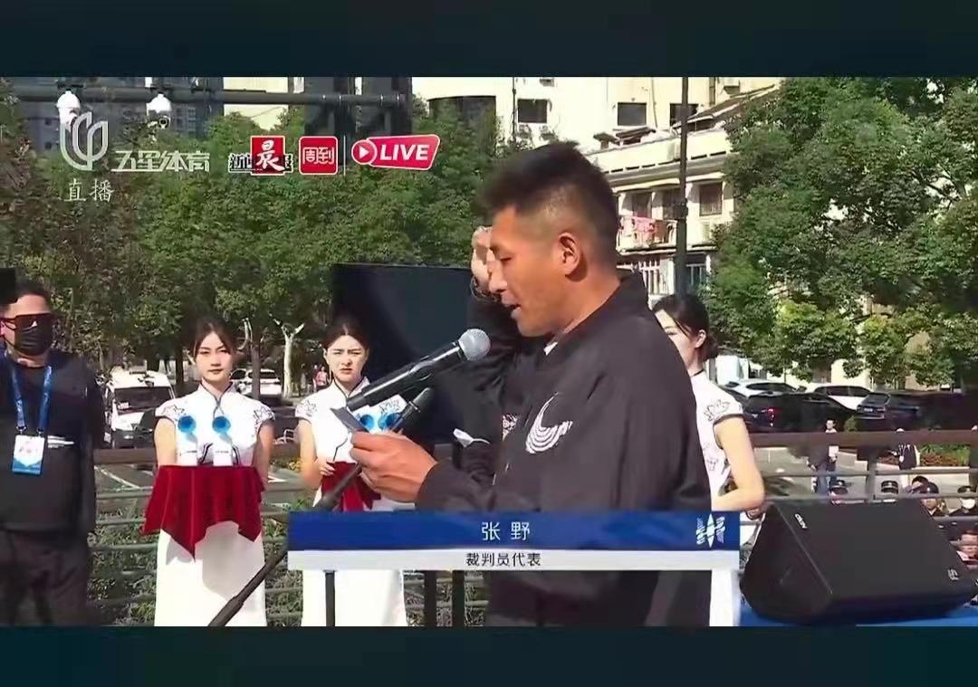 “你是裁判长是吧?”面对记者的疑问,张野连连摆手,“我不是裁判长,就是一名普通裁判,可能形象好一点,就代表大家进行了宣誓。”