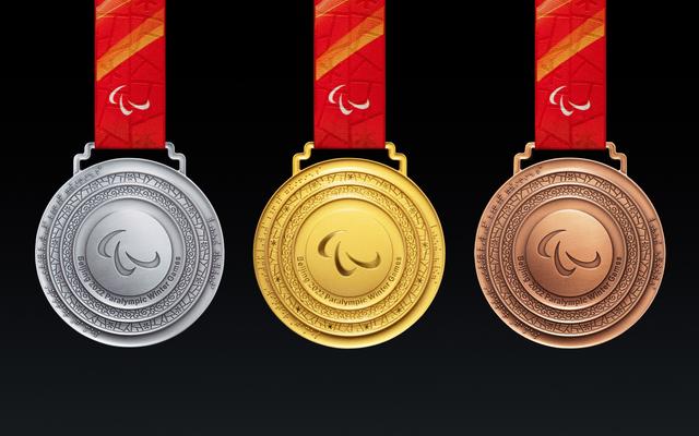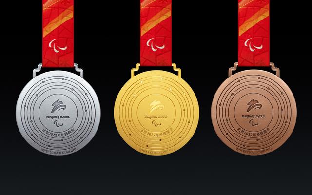 北京2022年冬残奥会奖牌正面中心刻有国际残奥委会标志,周围刻有北京2022年冬残奥会英文全称(Beijing 2022 Paralympic Winter Games)字样及金、银、铜的盲文。