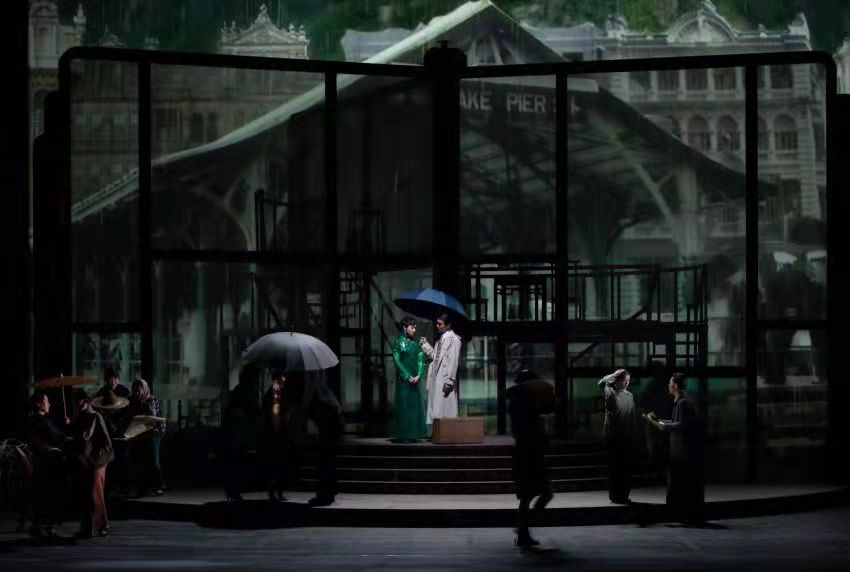更让人惊喜的是,《倾城之恋》中不仅有“大”的艺术审美,处处可见的“小”的细节追求也是打动观众的原因之一。比如演出开场那段长达7分钟的舞蹈默片,让观众瞬间进入了旧上海光影交织的舞会。许多人并不知道,为了这段舞蹈,编舞蔡敏仪和演员们进行了3个多月的排练,这才有了幕布背后白流苏和范柳原的第一次相见。