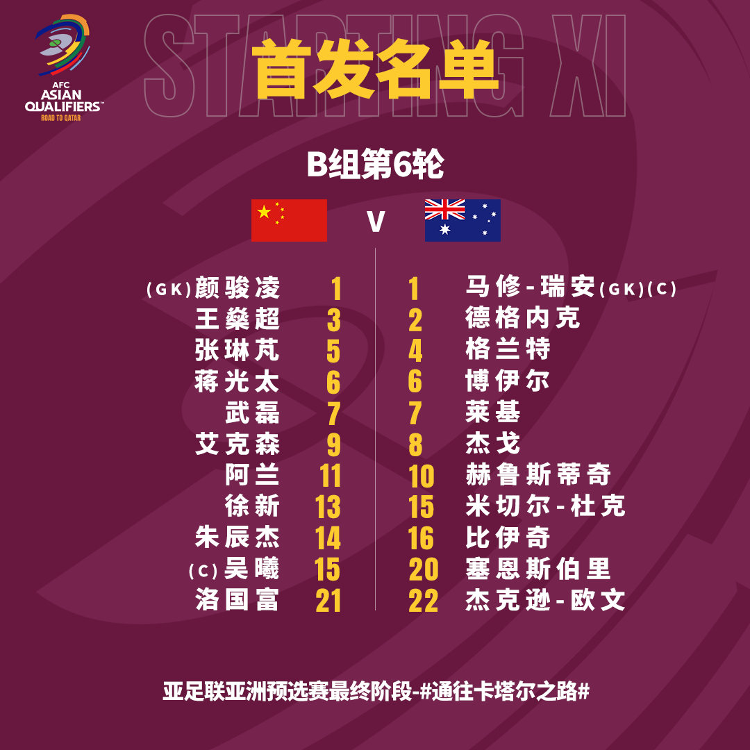 或许是听取了球迷的建议,经过前面的5轮比赛,主教练李铁的“试验成分”确实在逐渐减少。与上轮对阵阿曼队的阵容比较相似,国足排出了442的阵型,中后场七名球员不变:门将颜骏凌;四后卫张琳芃、蒋光太、朱辰杰和王燊超,双后腰徐新和吴曦。前场则有艾克森顶替张玉宁,与阿兰、洛国富一起,搭档武磊组成了最强攻击线。