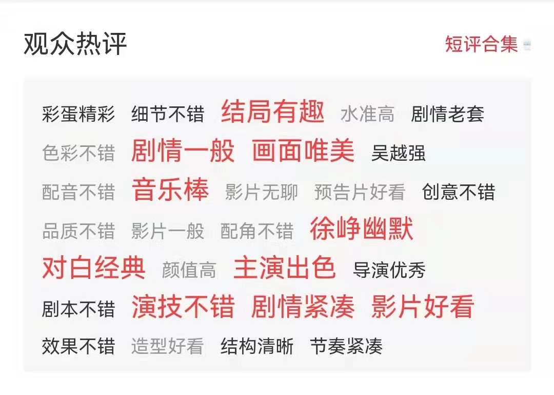 而观众对《爱情神话》热评的焦点则主要集中在“主演出色”“对白经典”上。“老上海”影迷朱朱在观看完《爱情神话》后盛赞这部影片“简直是十级上海话教科书!最经典的是那句‘白辛苦不辛苦’,贴切,这句台词真的精准拿捏了成年人的世界,点到即止又妙不可言。”
