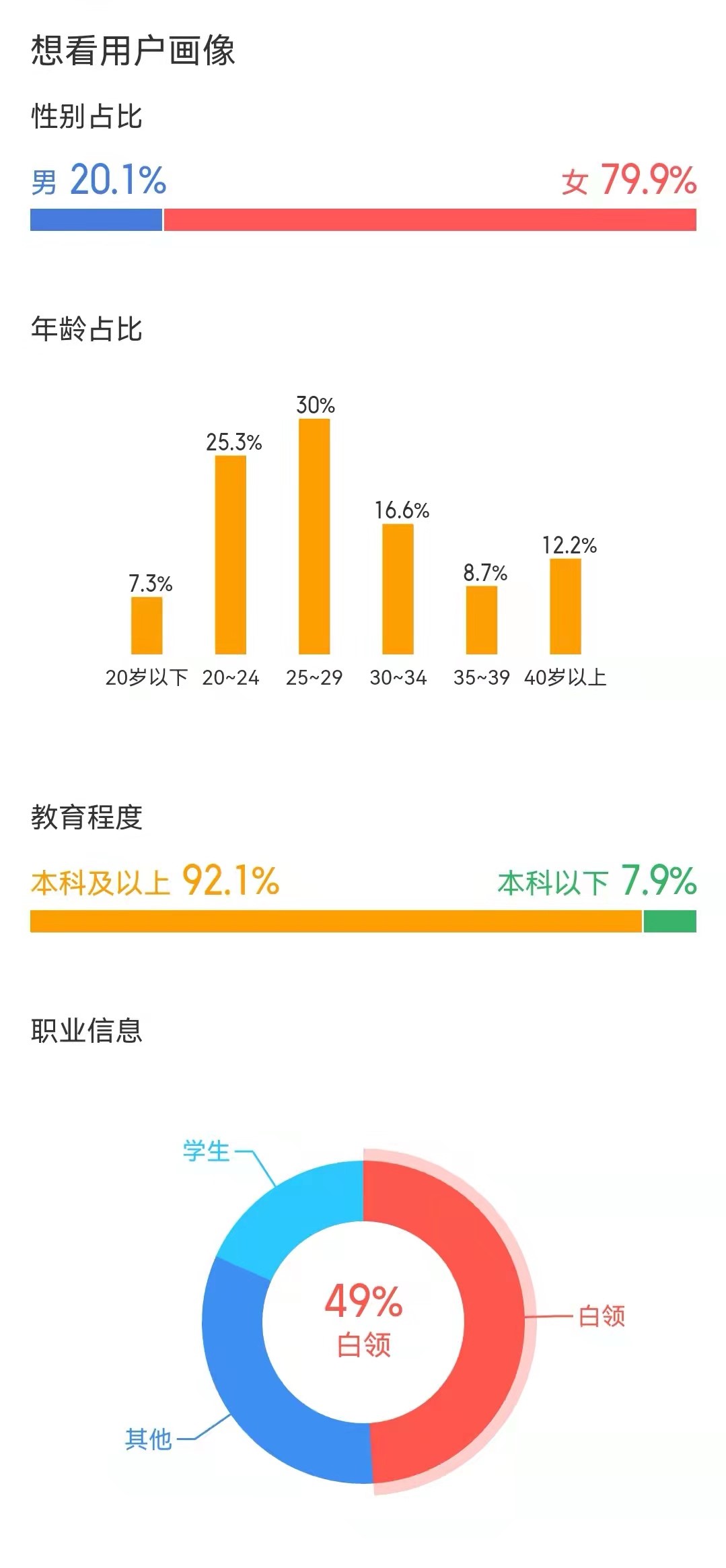 那么,究竟是谁支撑起了这个“神话”?猫眼方面通过大数据给记者列出了该片的用户画像分析。从系列画像来看,《爱情神话》对女性的吸引力明显高于男性,占比达到79.9%,年龄则集中在25-29岁。从职业划分来说,白领占到了49%。