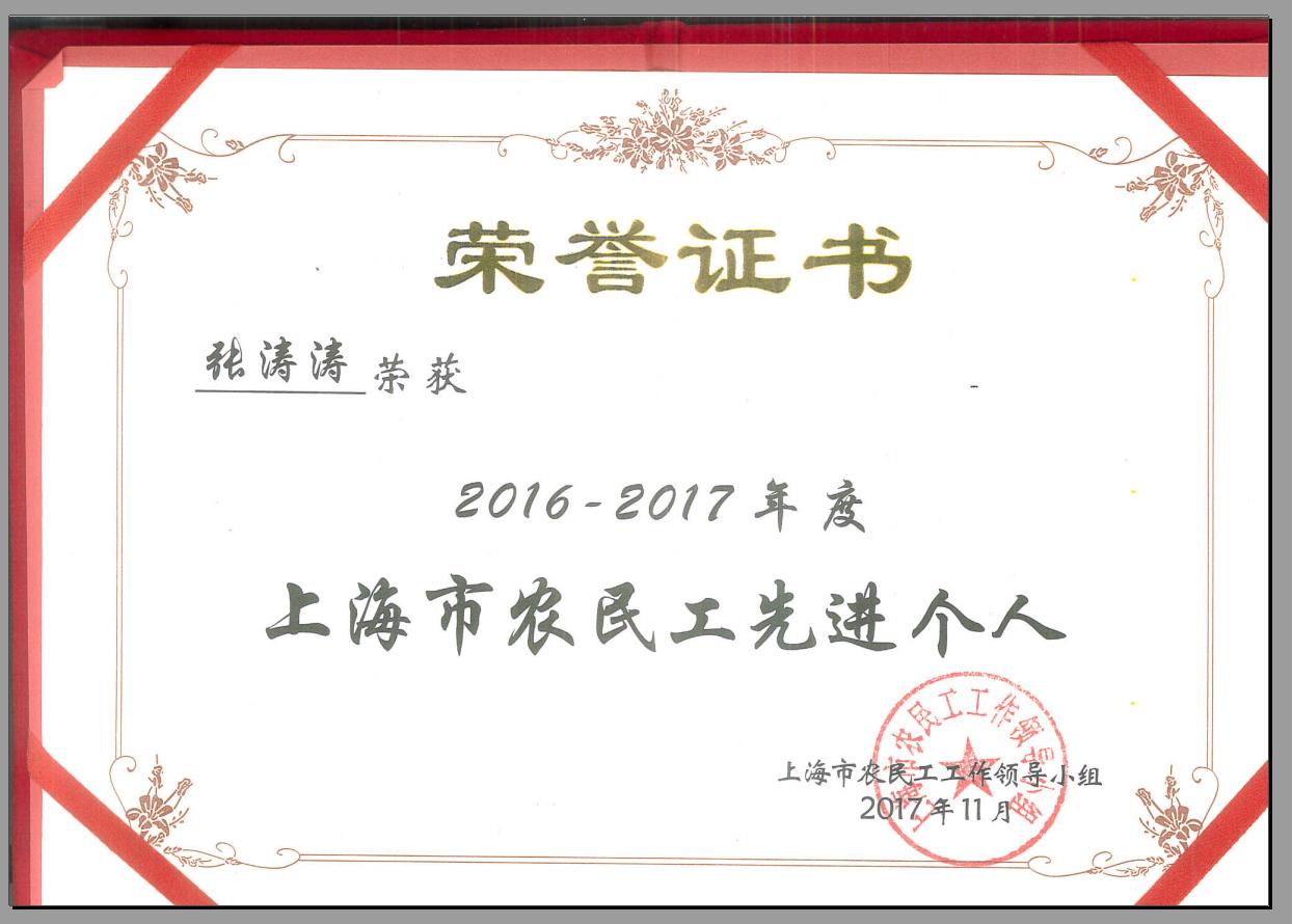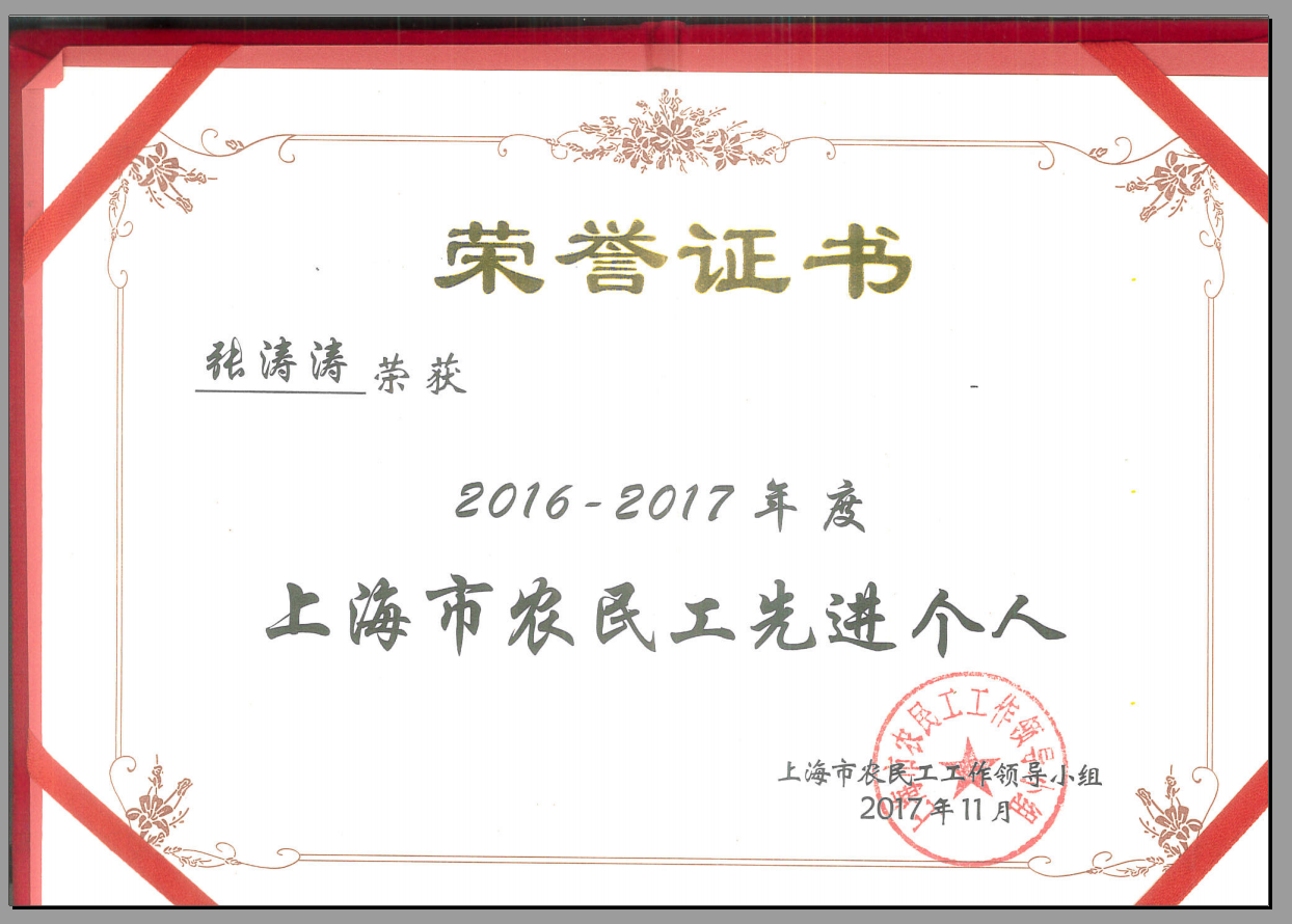 尽管现在的工厂都有摄像头,不需要时时往车间里跑,但张涛涛的值班室放了一张折叠床,只要工人加班,他也留下来加班,工作起来一丝不苟。用他的话说,只要他办公室的灯亮着,工厂的工人就不敢胡来。入职9年,张涛涛5次获评优秀员工,并被评为上海市农民工先进个人称号,居住证的评分颇高。