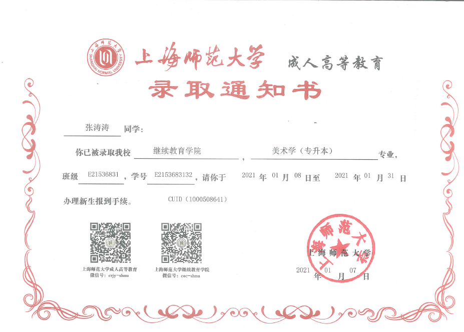 虽然已是小有名气,高中毕业就出来打工的张涛涛却从未放松对自己的要求。这几年,他考取了大专文凭,去年年初被上师大继续教育学院美术学专业录取,正在努力把本科文凭也考下来。