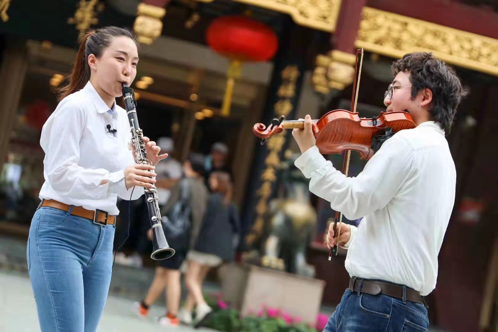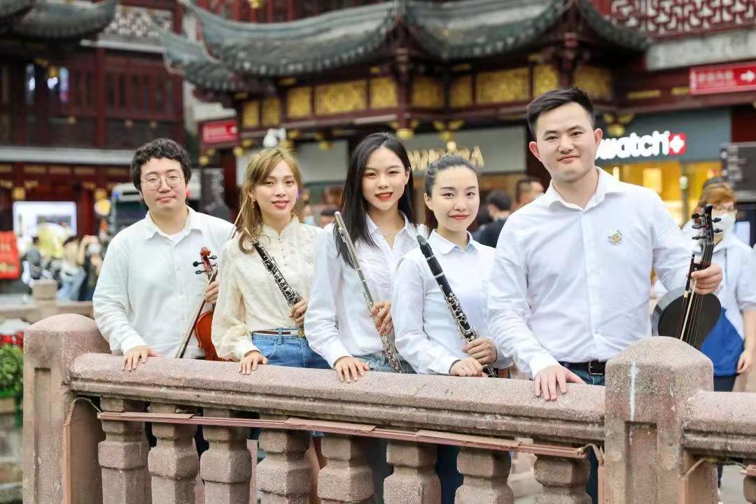 其他几位成员也表示,尽管“厅默森”是由职工组成的非职业乐团,但作为剧场人,他们对艺术水准始终有着严格的要求,对艺术普及更是肩负着一份责任。于是,在剧院停摆、演出延期的那段日子里,“厅默森”主动出击,与演艺大世界旗下十余家单位的艺术家携手走进豫园,举行了一场“快闪”活动。