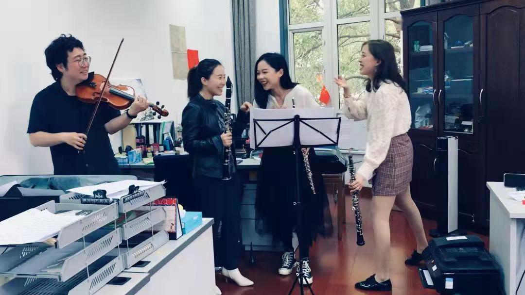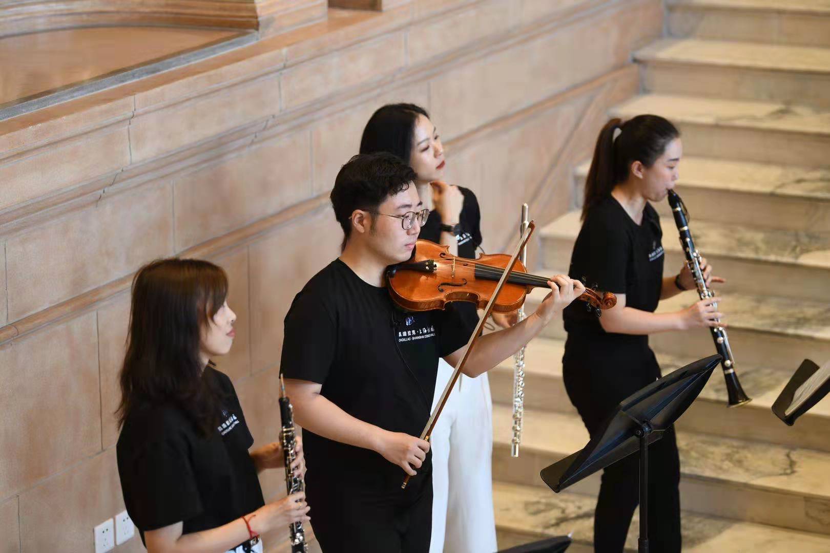 于是,2018年,音乐厅的5位90后职工组成“厅默森”重奏乐团,在“当古典遇上爵士”的参观日中,以一首 《匈牙利舞曲》正式“出道”。礼宾主管李沁卉化身“女高音”吹响了黑管,市场部梁劼负责长笛,公关部余亦舒成了双簧管担当,场务部的顾嘉豪则和另一位同事组成了小提琴梯队。独特的重奏配方不禁令人耳目一新,几位职工达人更是惊艳了不少资深乐迷。