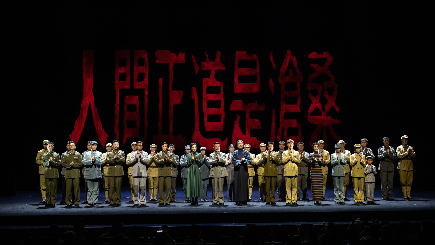 话剧《人间正道是沧桑》的导演胡宗琪与姚远是“文华大奖”组合。二人再度携手,打造出一部气势恢宏之作,将家族的兴衰融进历史的宏大叙事,在革命的历程中完成家族叙事。浸染沧桑气质的舞美设计,悲壮又激情暗涌的原创音乐,等比例复刻的100余件道具,细节满满不惜工本的300多件服装……