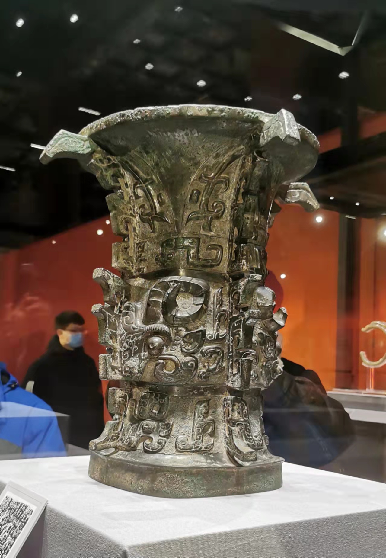 工作人员告诉记者,这件文物不仅是陕西宝鸡青铜器博物院的镇馆之宝,还与北京冬奥颇有渊源。原来,北京冬奥会火种台的设计灵感就来自于此。记者了解到,1975年,这件浮雕为“饕餮纹”的铜尊因其造型图案精美被选送至国家文物局作为全国新出土文物精品出国展出,上海博物馆馆长马承源发现铭文,并为其命名为“何尊”。