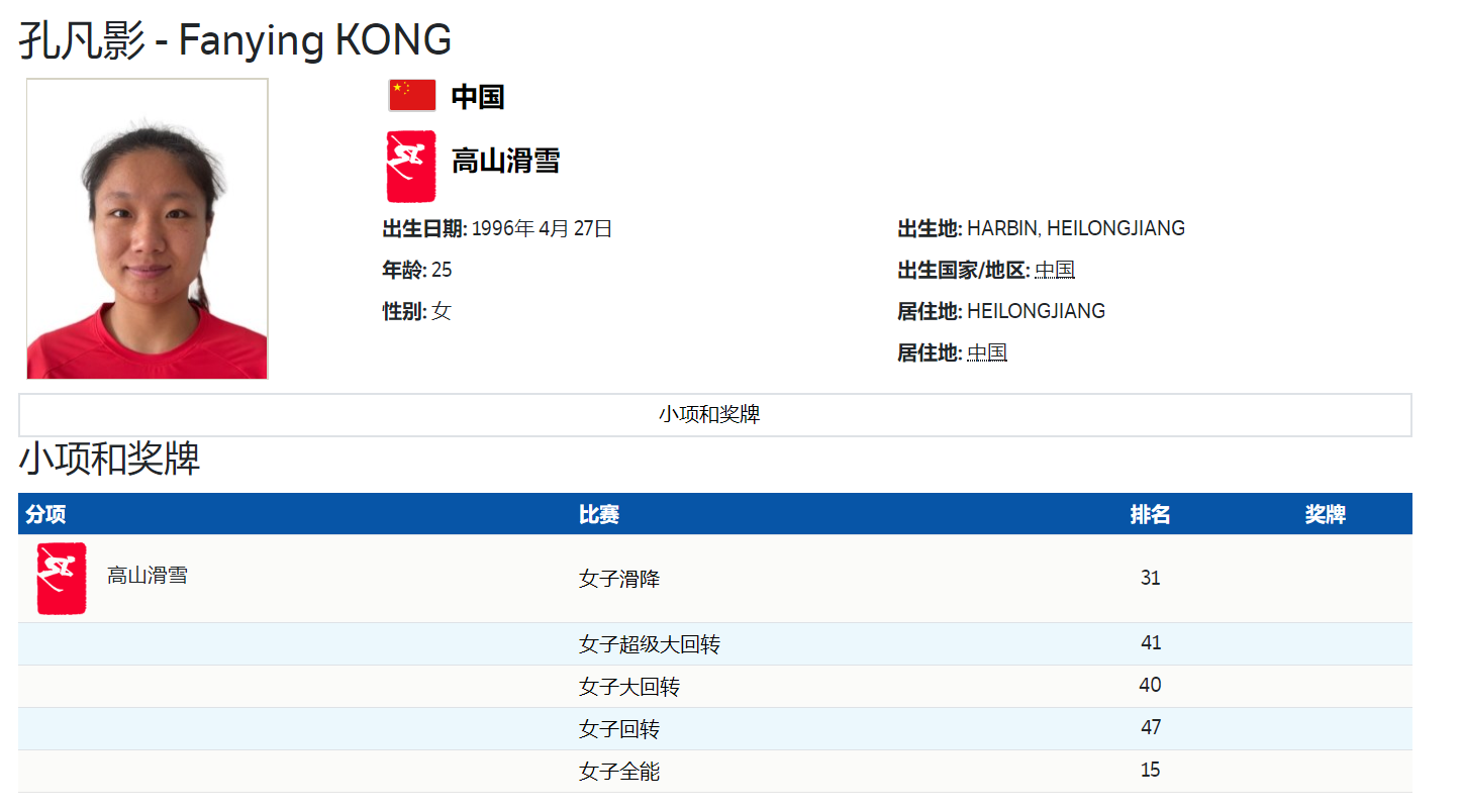 本届冬奥会,来自黑龙江哈尔滨的孔凡影报名参加了高山滑雪滑降、回转、大回转、超级大回转、全能、混合团体项目一共6项比赛,是本届冬奥会我国参赛项目最多的运动员之一。