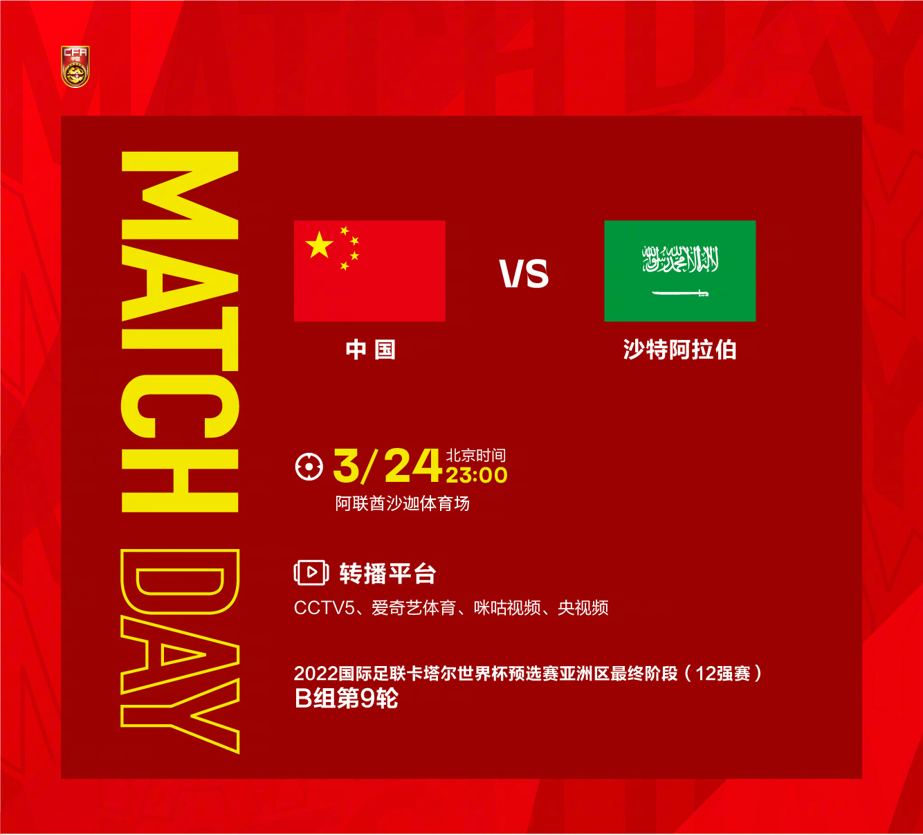 中国队目前战绩为1胜2平5负排名小组第五,已提前两轮无缘卡塔尔世界杯。由于留洋球员李磊最后一刻因伤落选,加上队长吴曦因为累积黄牌停赛,因此剩下的23名球员都可以进入比赛大名单。