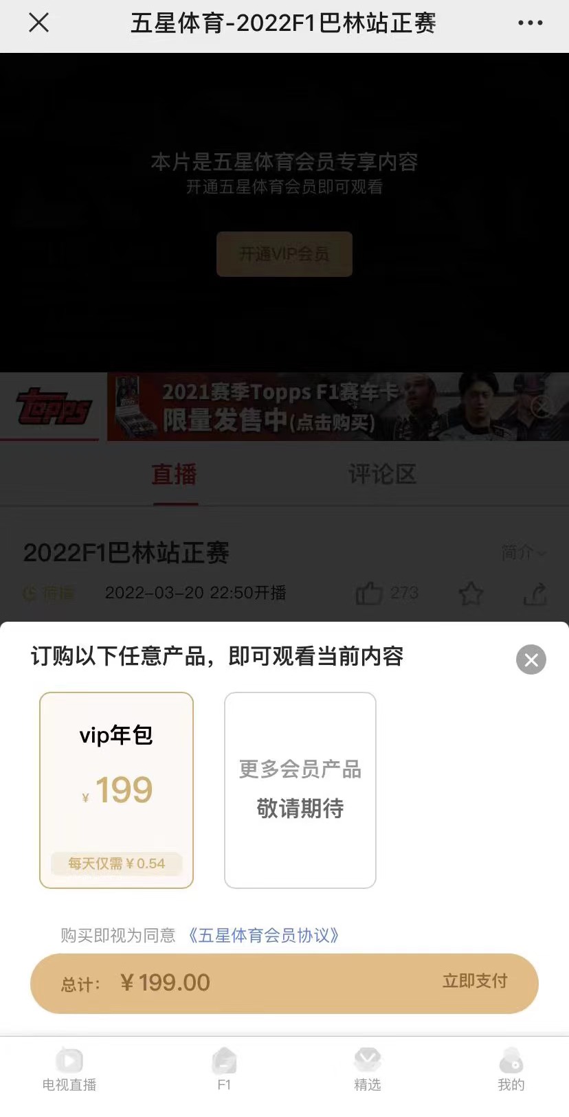 北京时间3月27日凌晨,上海车手周冠宇在F1沙特站的排位赛中排名第12位,刷新了个人F1排位赛最佳战绩。沙特站的正赛将在28日凌晨1点发车,但对于国内车迷来说,不仅时间有些尴尬,转播平台同样尴尬,传统电视台仅有上海五星体育和广东体育频道进行直播。大家已经习惯的视频平台也没有直播版权,五星体育的微信端可以观看,但需要付费199元购买年包会员。