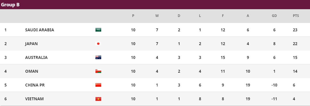 最终,重金归化的球员中只有洛国富取得1个进球,阿兰贡献了1次助攻,其他球员都没有数据贡献。国足整个12强赛10场比赛1胜3平6负,进9球丢19球,在小组6支球队中排名倒数第二,积6分仅仅好过越南队。这个排名和上一届十二强赛完全一样,但相比于4年前的12分,以及和第三名仅仅相差1分,本届12强赛国足的成绩还是有不小的差距。