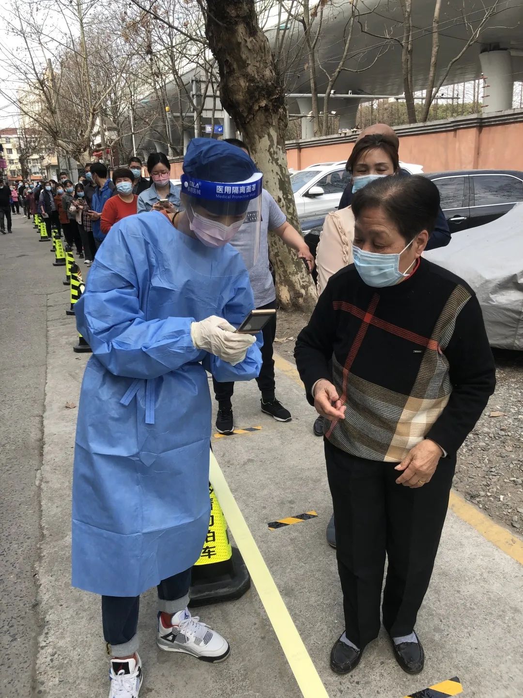 她的工作是为小区居民登记楼号,发放检测试管,同时协助医生上门为行动不便的老人做核酸检测。工作看似简单却十分考验耐心,连续多小时的站立,更是让李丽的双腿常常变得僵硬。和陈真荣一样,再忙再累,她从没有一句抱怨。用李丽自己的话说,“抗疫工作并不容易,我们要从点滴小事做起。有需要、就顶上,为上海的抗疫工作献上绵薄之力,也是共产党员应尽的义务。”