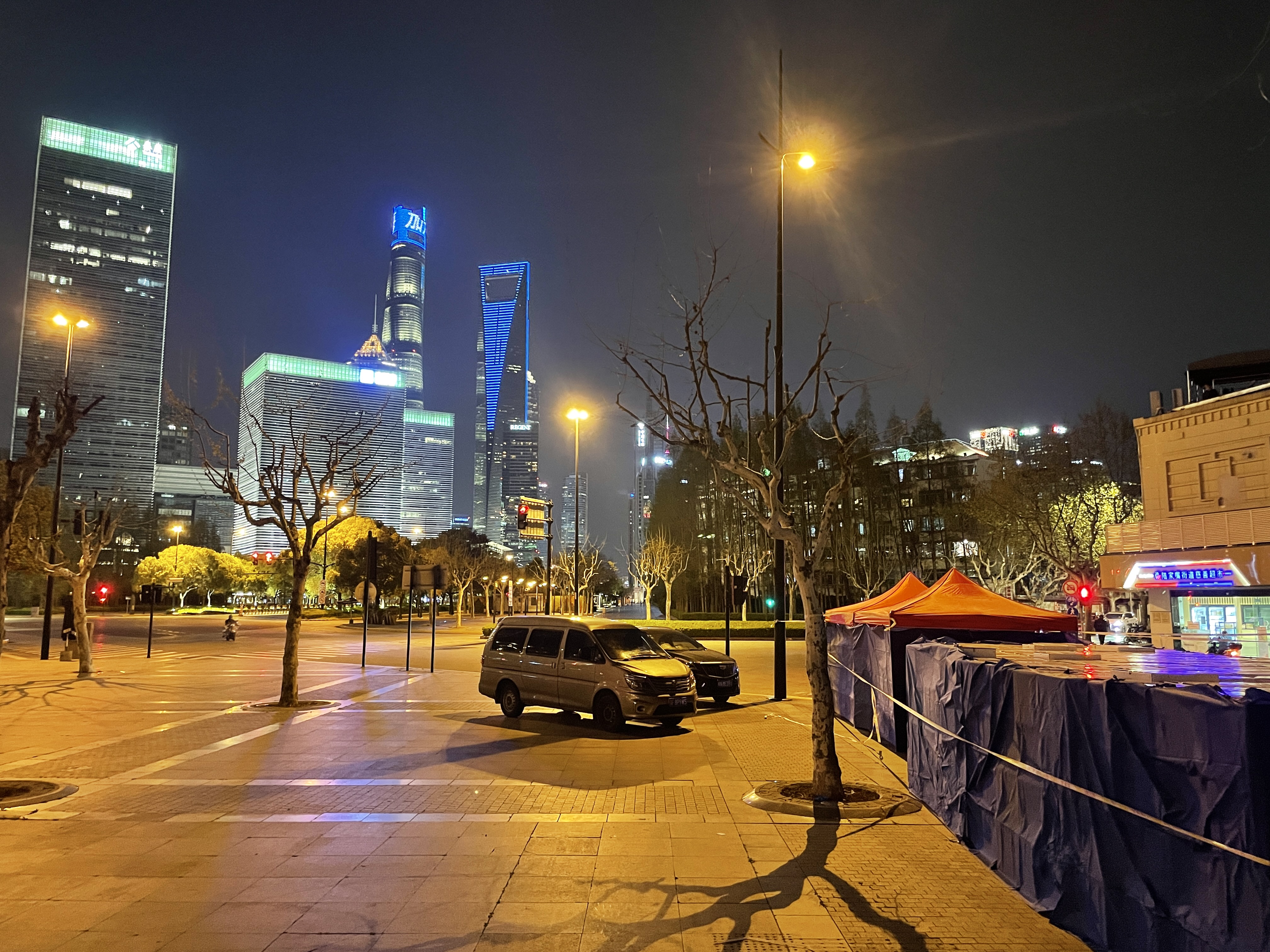 当车水马龙的陆家嘴按下暂停键,“三件套”高楼脚下的僻静街道,这几天总是停放着蔬菜车和一箱箱堆积的物质。