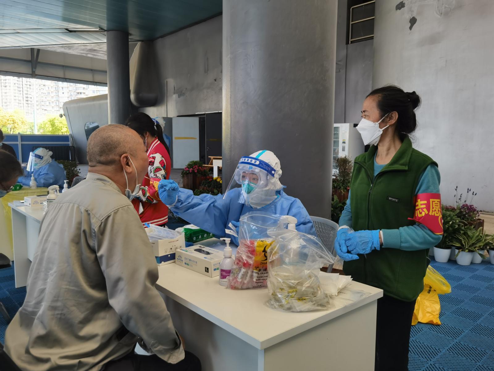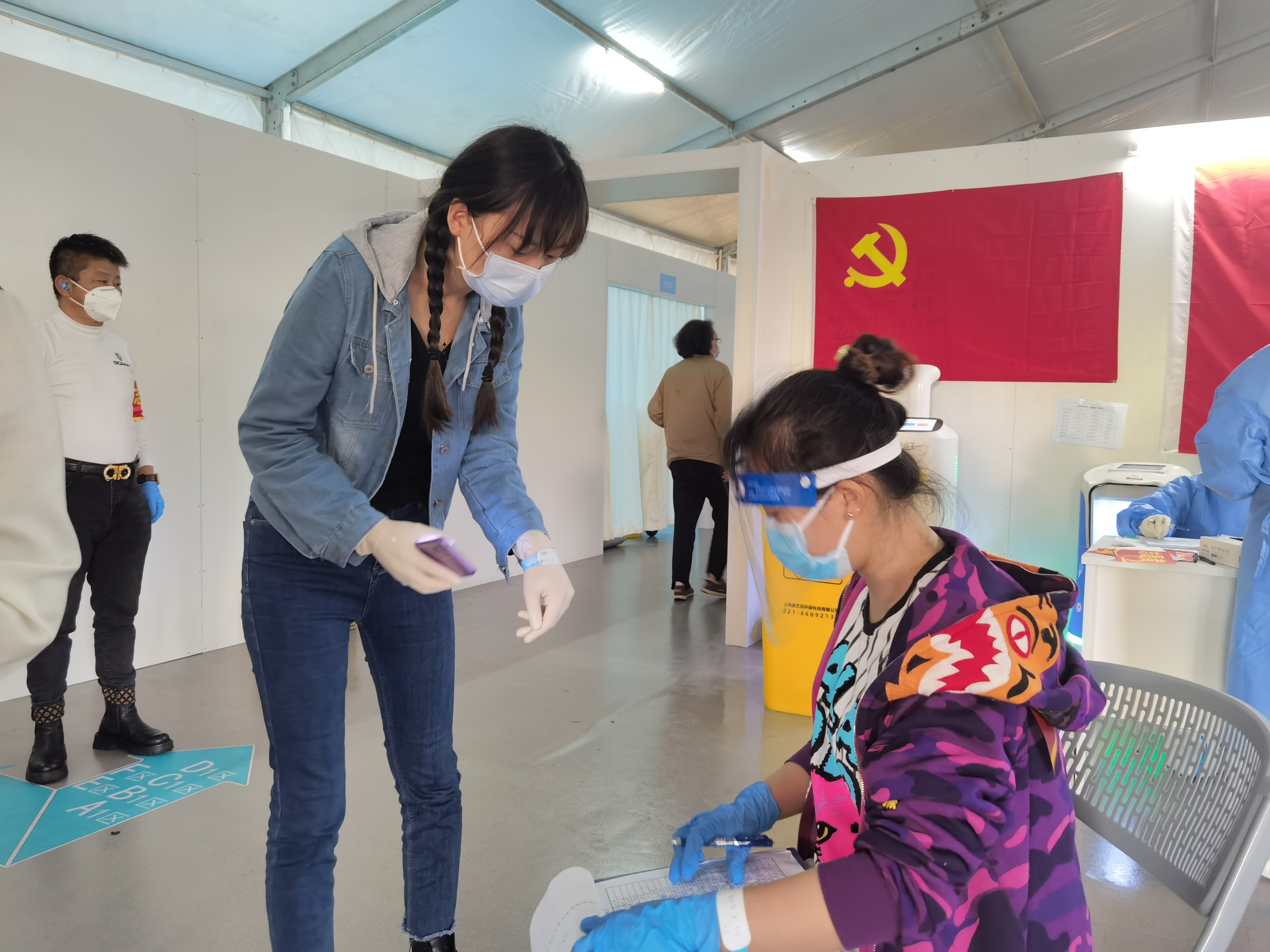 如今,从最初10名“病友”加入,到已经组织起一支20多人的志愿者队伍,薛飙被任命为黄浦区集中隔离收治点船舶馆患者临时党支部书记。志愿者人员包括入院治疗的医护人员、公务员、物业工程部人员,甚至还有两位松鹤楼的小帅哥。他们通过维持秩序、呼叫病人、为大家调整手机核酸码、分发餐食等工作,大大减轻了医务工作者的压力。