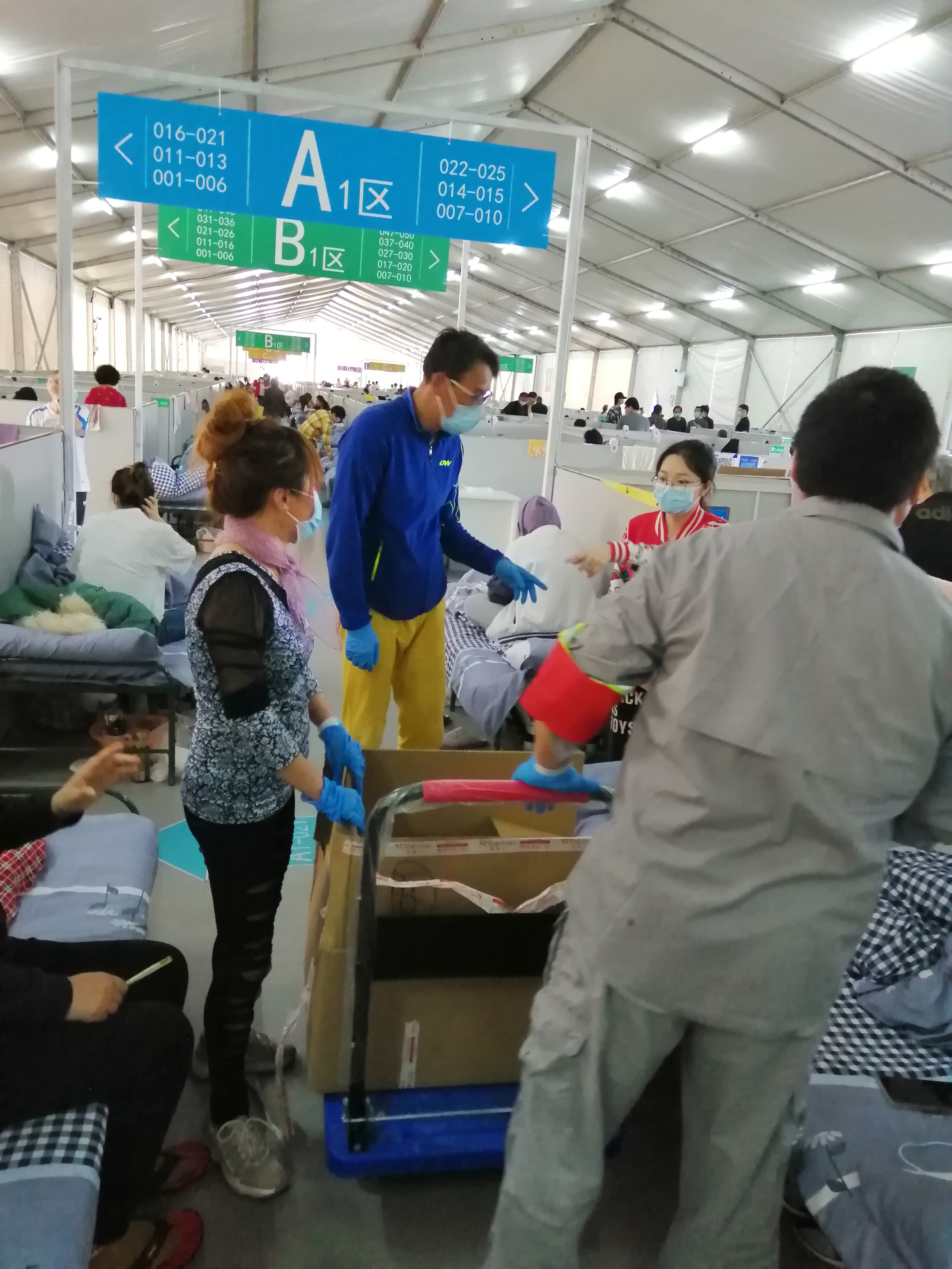 答:我曾有援藏三年的经历,对各种各样的生活条件都能较快适应,希望把这样的淡然和乐观带给更多人。我们的志愿者一直在鼓励大家,尤其是新转运进来的朋友,告诉他们不要因为感染而自暴自弃。