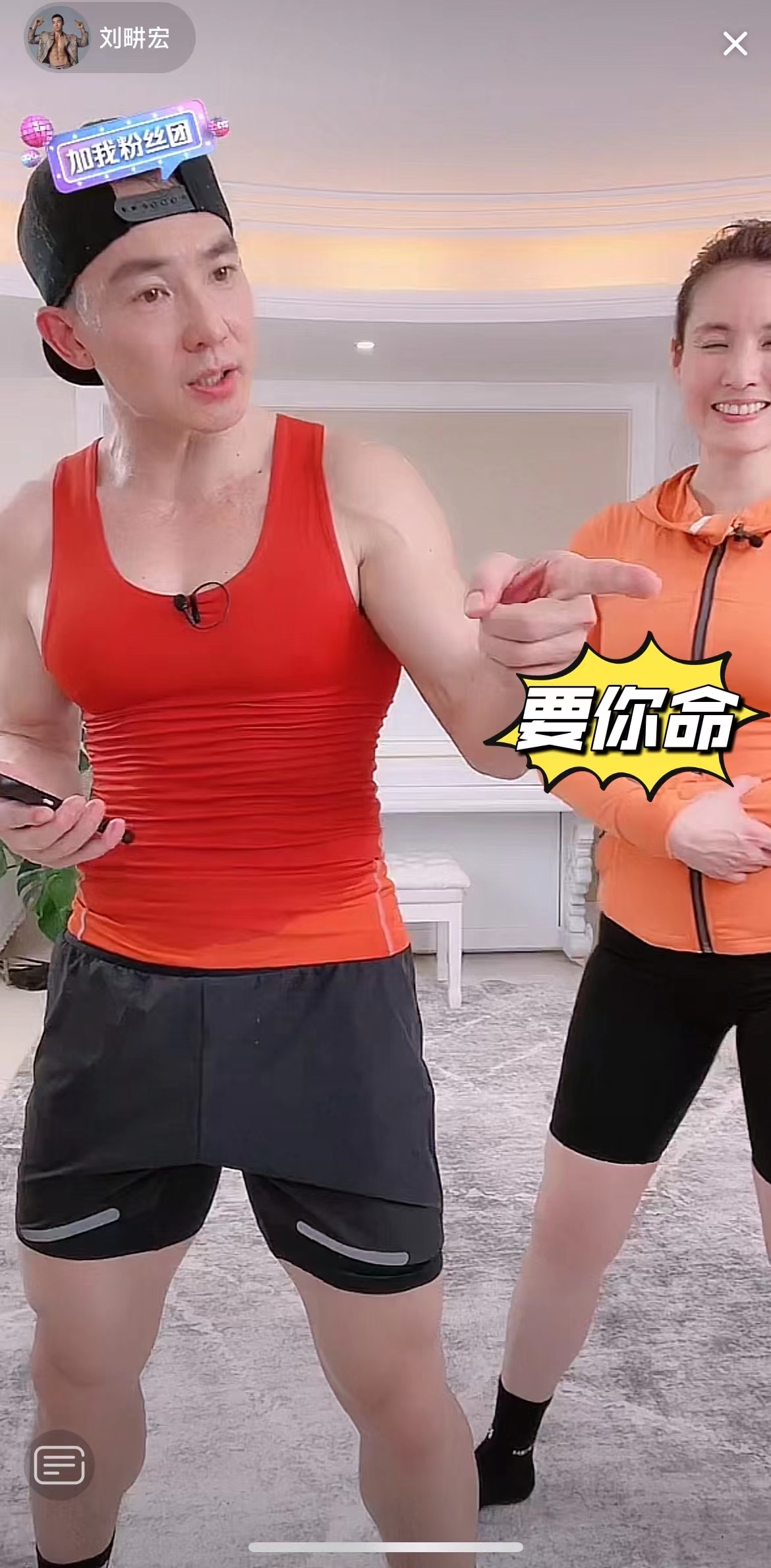 每次健身直播,刘教练在前面元气满满,还不停为大家加油助阵,而王婉霏在后面跟得气喘吁吁,完全是“被迫营业”,脸上时不时出现“痛苦面具”。这完全就是普通人跟着练,却又实力不够的样子。