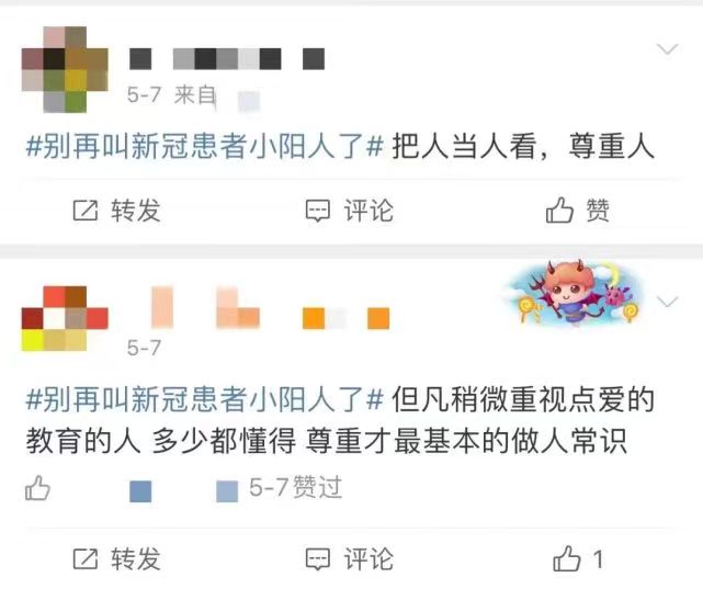 在黄安靖看来,所有人都不希望自己成为新冠病毒阳性感染者,而“小阳人”有把这一人群“身份化”的作用,这一“身份”的“固化”,无疑会导致社会歧视。特别是把新冠阳性感染者说成“羊”,还加上表示性别的粗俗字眼“公”“母”,无疑是对当事人的极大不尊重,甚至是冒犯。