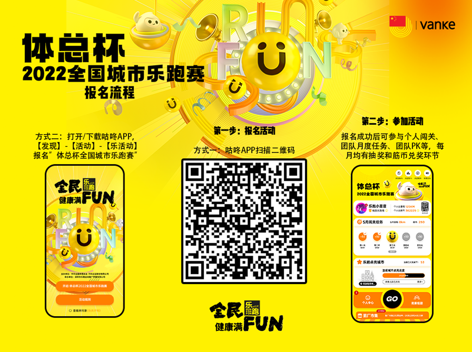 记者了解到,由中华全国体育总会联合万科企业股份有限公司主办的“体总杯”2022全国城市乐跑赛已于4月28日线上启动,将一直持续至9月30日,欢迎运动爱好者在做好疫情防护的前提下,从脚下的每一步开始,从每一个你我做起,科学健身。