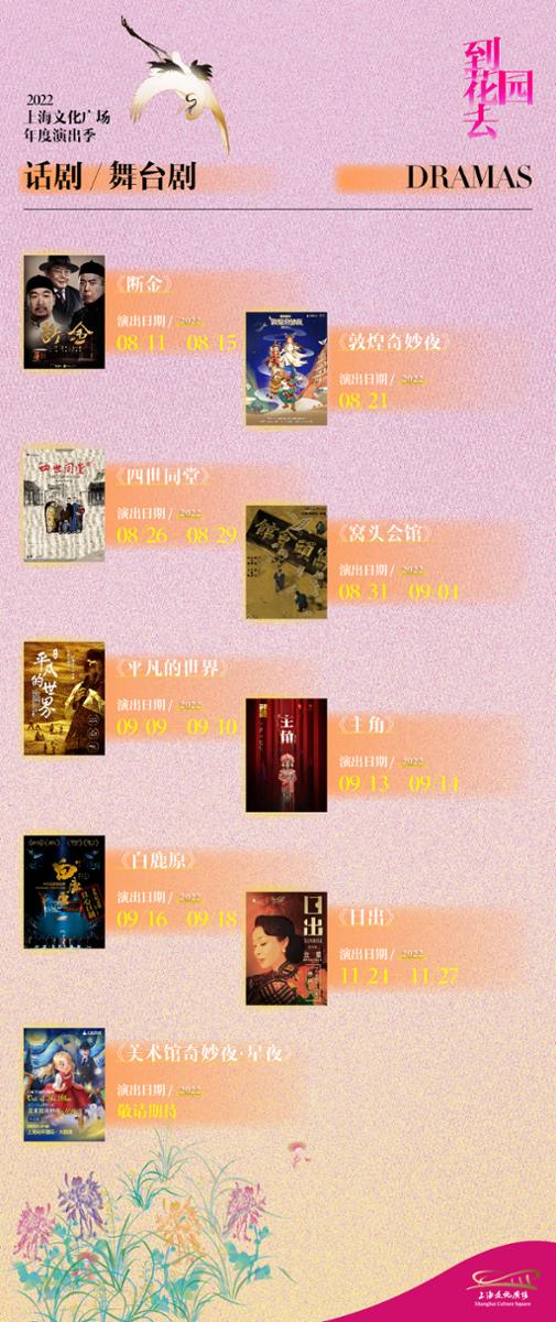 上海文化广场日前于线上直播举办“到花园去——2022上海文化广场年度演出季发布会”,正式公布2022全年剧院演出节目与艺术活动等重要规划,赴约每年春天与观众的舞台聚会。当晚发布的演出季主题片以“文化原色”、“生命底色”、“万象声色”三枚关键词,串联起本年度舞剧、话剧舞台剧、音乐剧三大板块共39台重磅演出。