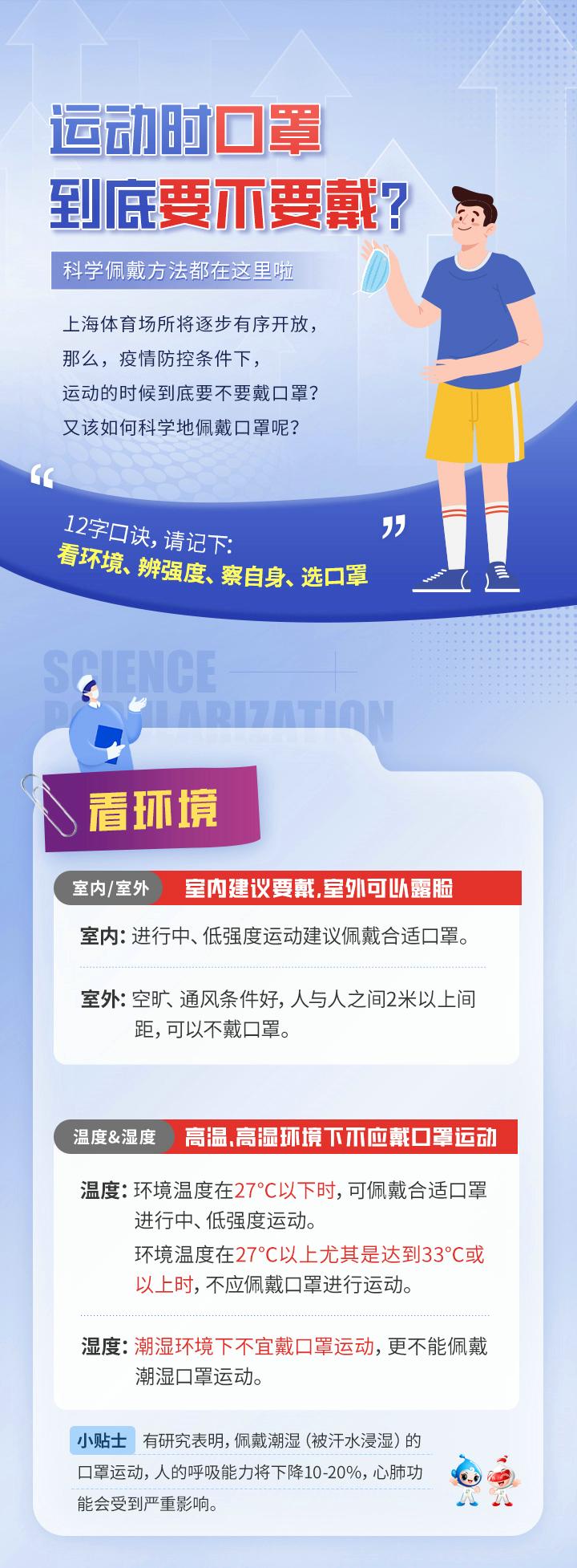 上海体育场所将逐步有序开放,那么,疫情防控条件下,运动的时候到底要不要戴口罩?又该如何科学地佩戴口罩呢?市体育局推出“一图详解”。