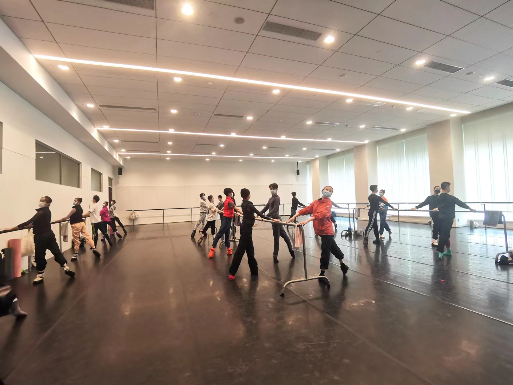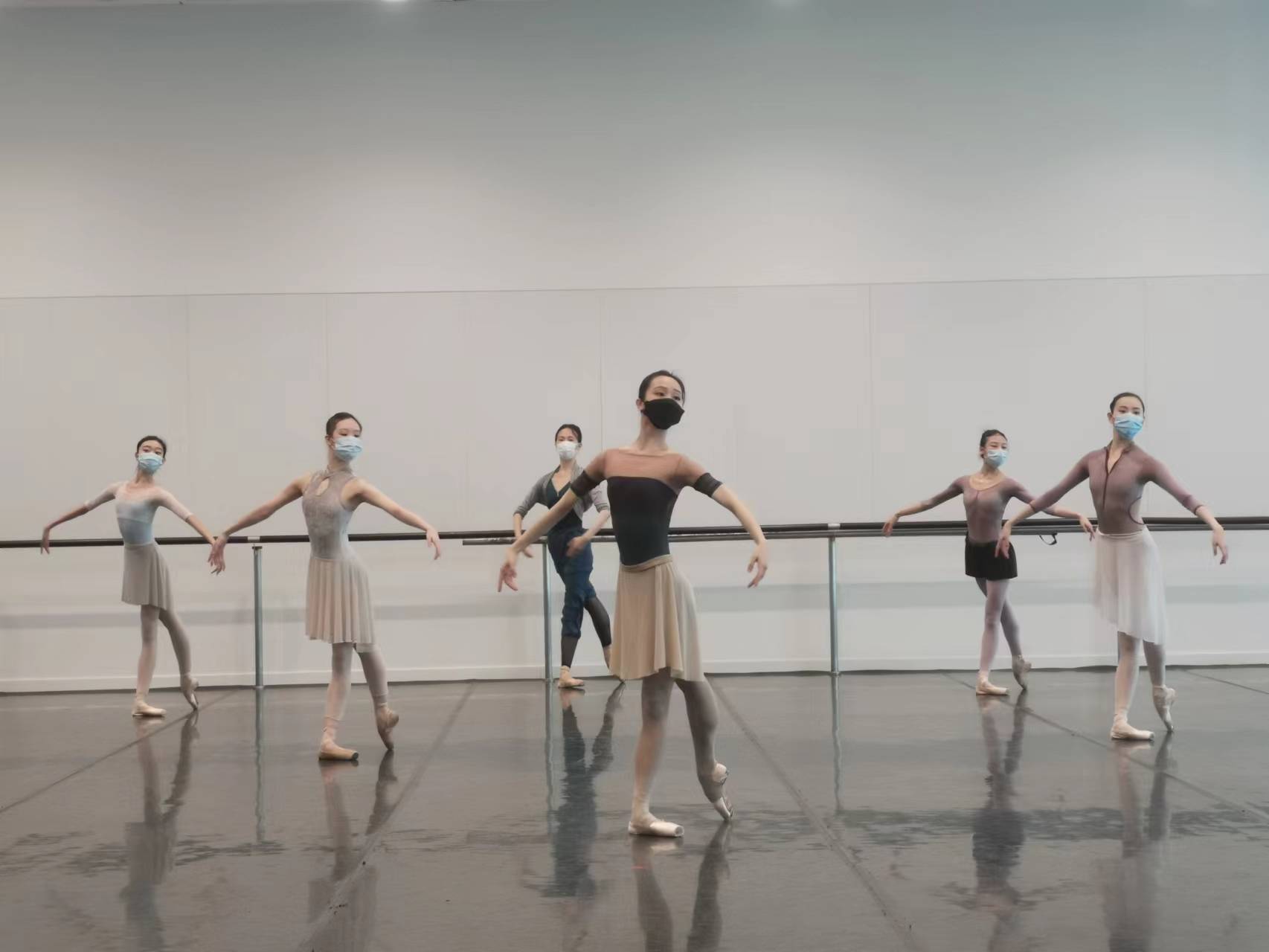 6月1日上午9点30分,位于虹桥路1650号一号楼的上海芭蕾舞团排练厅内,响起了悠扬的钢琴声。伴随着足尖落地时发出的哒哒声,30余位上芭舞者时隔两个月再次回到了久违的教室,开启了复工后的第一堂集训课。