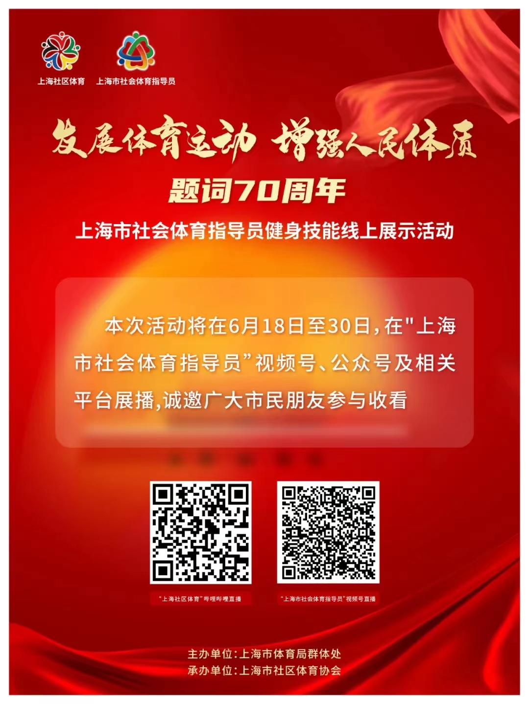 本次上海市社会体育指导员健身技能展示活动为全民健身线上运动会(上海赛区)的一个重要组成部分,由线下到线上,通过不一样的形式充分发挥社会体育指导员在全民健身中的宣传、指导与引领作用,带动更多市民参与健身,倡导健康向上的生活方式。