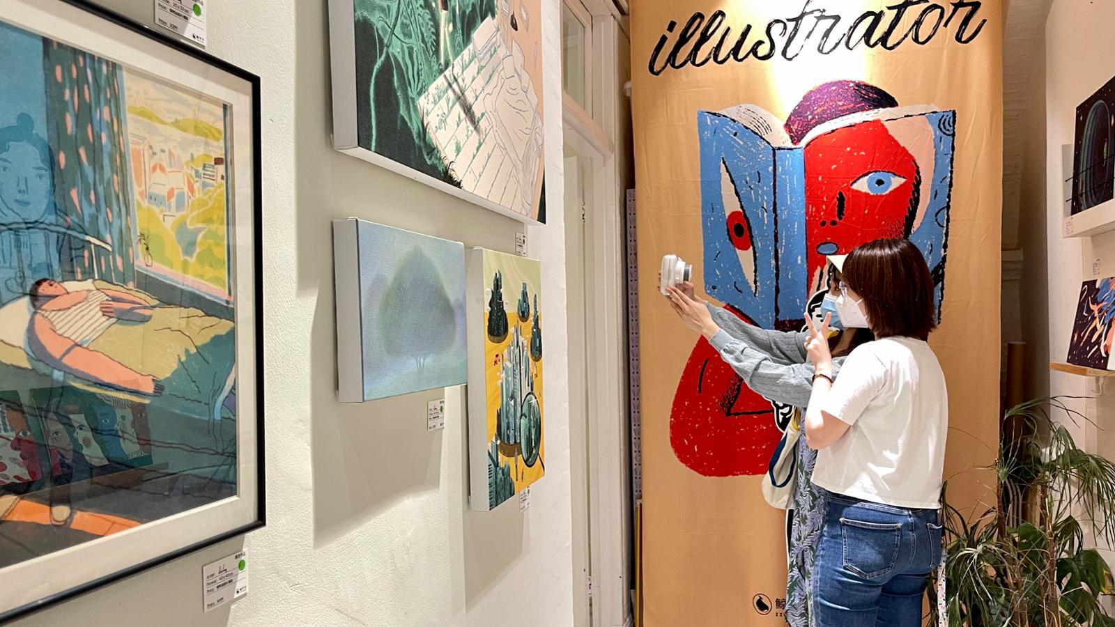 大型美术馆很少为插画举行展览,这个橱窗成了观众了解插画呈现方式的新窗口。随着作品和文创品越来越多,各地的插画师争相跑来“露脸”,店铺的人气也旺了起来。从2017年至今,1673天里,编辑鲸字号书店小报18期,每年平均到访保守估计2.5万人,举办展览24场。这是五年前很难想象的“成绩单”。