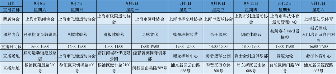 直播平台:哔哩哔哩、中国体育直播TV、虎牙直播、上海社区体育视频号、上海市社会体育指导员视频号。