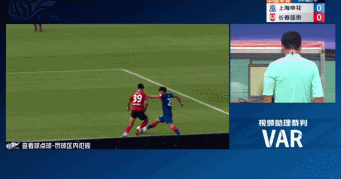 两分钟后,曹赟定继续在左路突破入禁区,被对方球员推倒,马宁第一时间果断给出了点球判罚,但随后VAR介入,在观看了慢动作回访后,马宁取消了点球判罚。