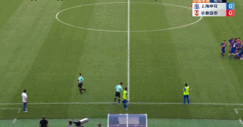 第13分钟,申花外援巴索戈发起快速反击,连过两人后突入禁区,分给中路博拉尼奥斯,后者敲给左路的曹赟定,曹赟定调整之后推射破门,不过,边裁举旗示意其越位在先,进球无效。