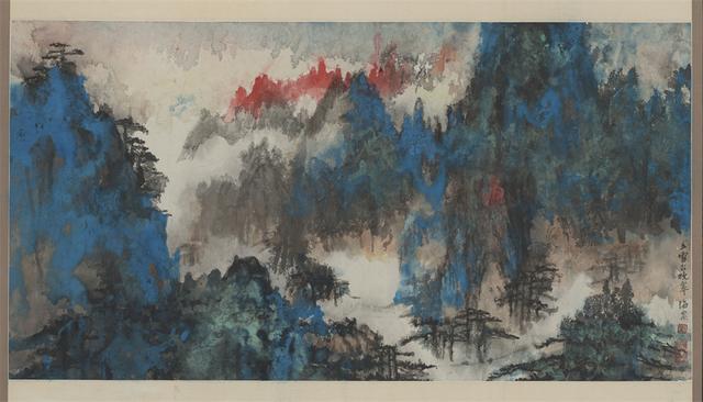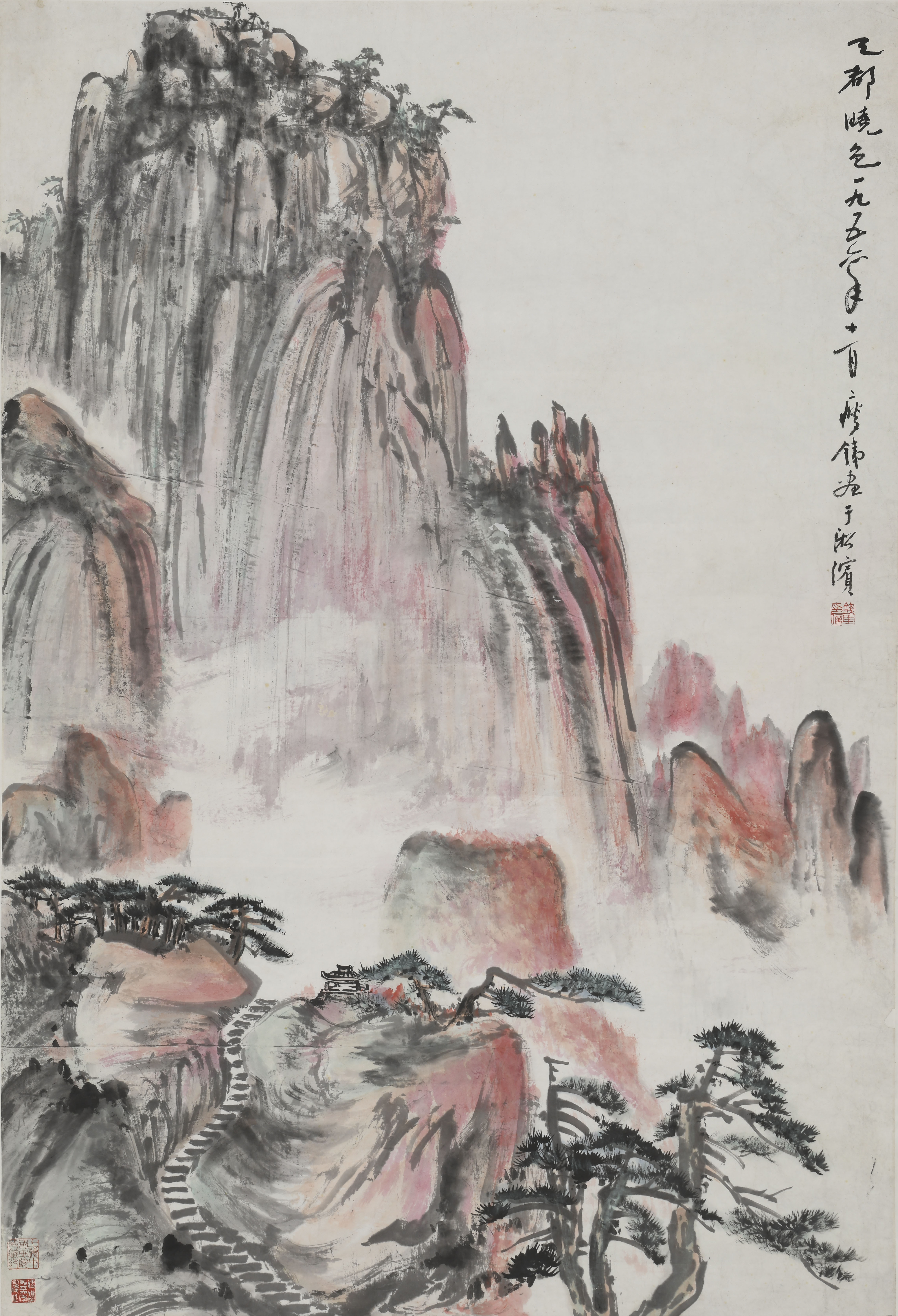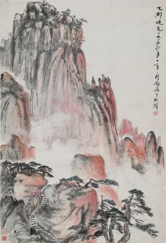 刘海粟《黄山立雪台晚翠图》20世纪80年代 47.8×90.8cm