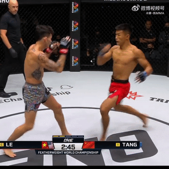 开局两人就进行快速移动,虽然打击频率不高但却暗藏杀机。两人在拳法的使用上都很谨慎,但唐凯的扫题却频频命中。在中远距离丹勒腿部频遭打击,他也开始急迫的寻找反击机会。第二回合丹勒加紧了拳法攻势,而唐凯的低扫给丹勒造成了非常大的杀伤。不断被消耗的丹勒开始尝试抱摔却被唐凯防住。在第二回合最后一分钟时,唐凯低扫直接将丹勒扫倒,占据打击优势。