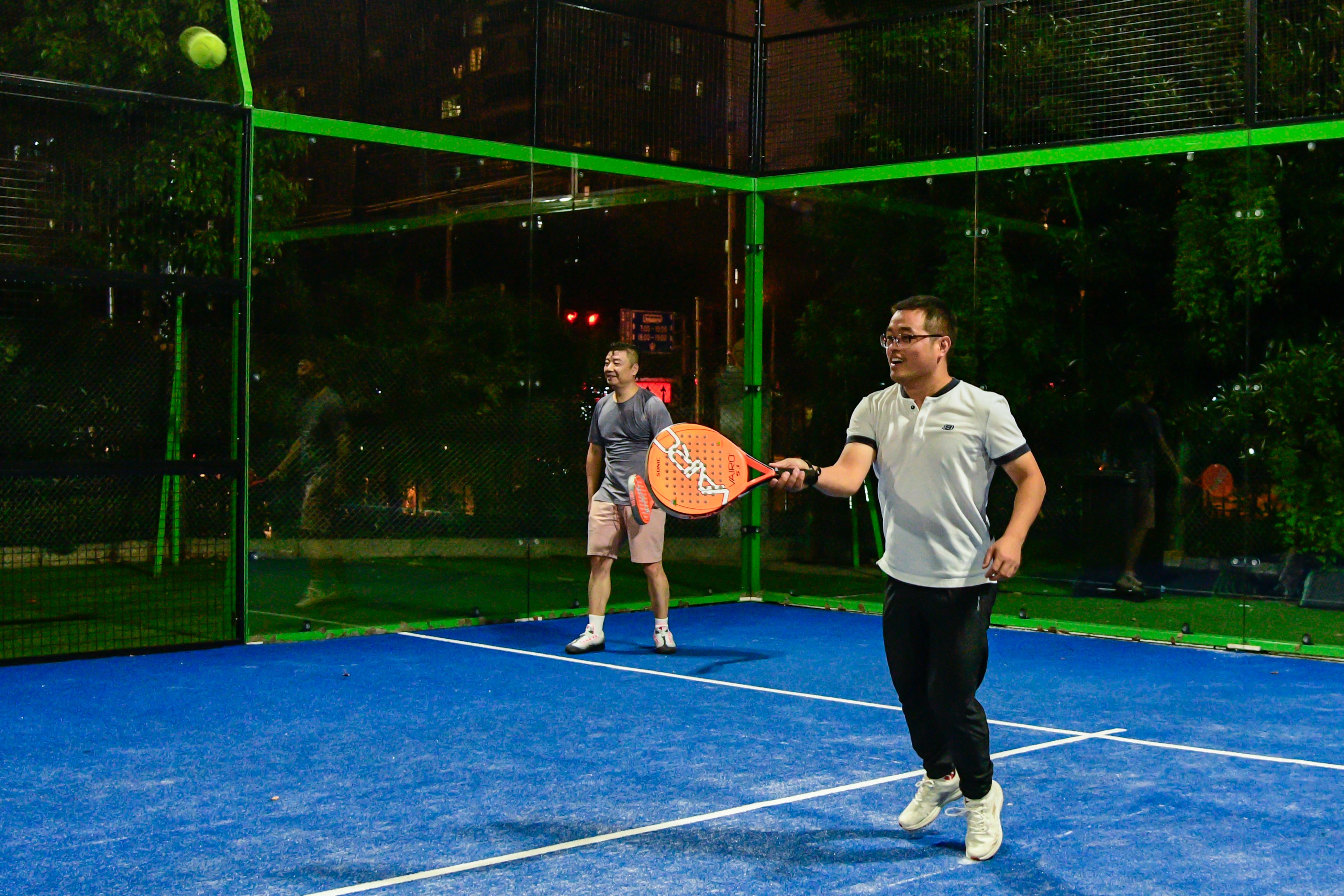 发现板式网球之后,徐飞每周会打三次,“一般是周四、周五、周日,工作之余过来。板式网球可以缩小相互间的差距,打起来比较欢乐。网络上也有很多的相关视频,通过视频很快就能学会一些技术动作。”