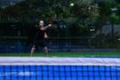 刚刚过去的这个周末,虽然有台风影响,不时有雨水降临。但随着夜幕降临,下班后相约前去打球的板式网球爱好者逐渐增多。晚上7点,12名爱好者展开了一场自发组织的小型比赛,热身训练环节,两片场地展开三对三的对抗,甚至显得有些局促。