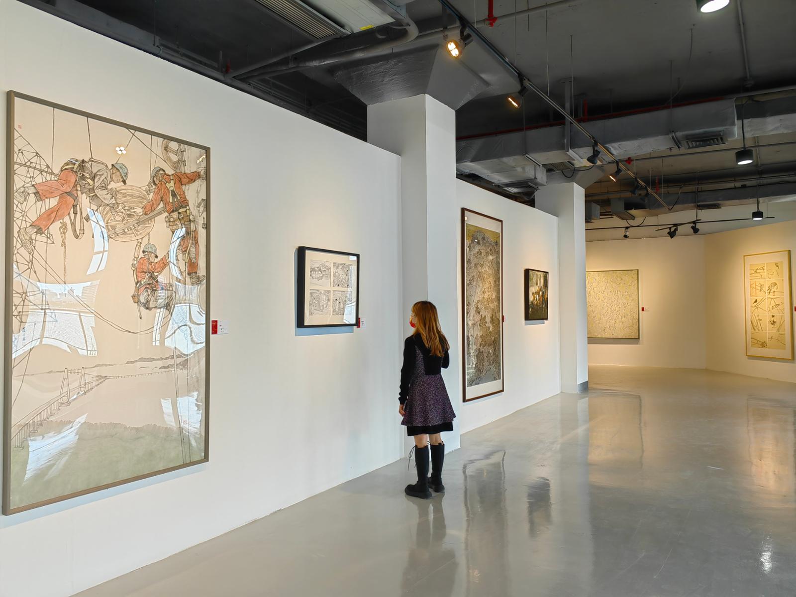 此次在杨浦区毛麻仓库展示的是美术大展的240件入围作品,包含80件获奖作品。作为赛事评委,上海师范大学美术学院教授刘亚平不禁感叹,今年的参赛数量再创新高。“相比前几届大赛,今年的画种非常齐全,从国画、油画、版画到漆画、农民画,几乎囊括了所有类型。”