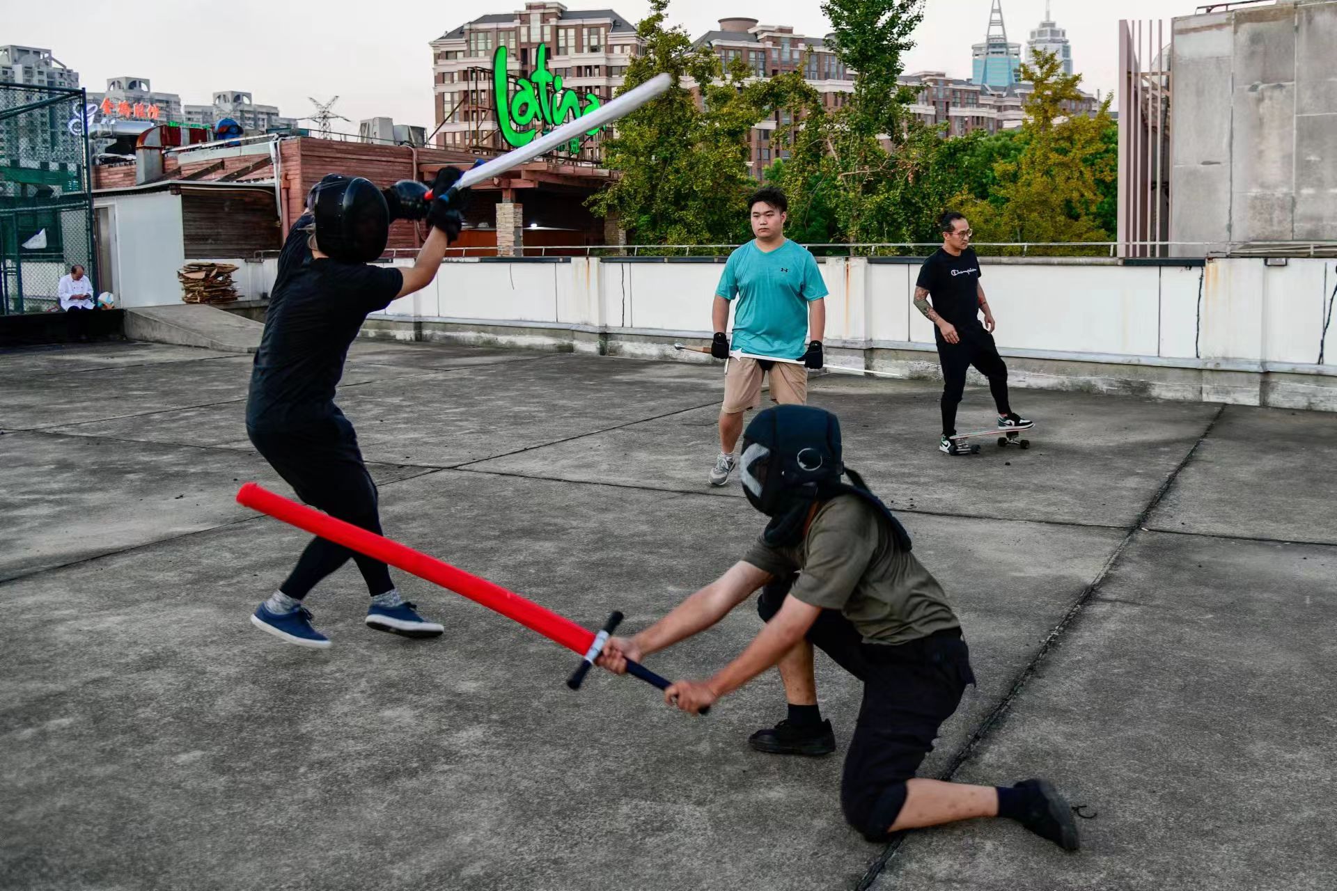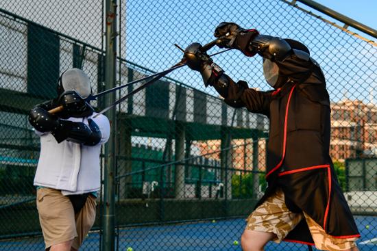 在一群男生中,前来体验的周女士显得有些特别,“我还是个‘小白’,只上过四、五次课。”她娇小的身形扛着长长的刀剑,显得有些违和,“我觉得这项运动可以让我很好地放松自己,缓解工作上的压力,在练习的过程中,我感觉我和手中握着的剑融为一体,心无杂念,保持专注。”