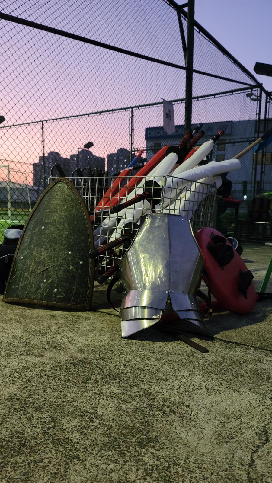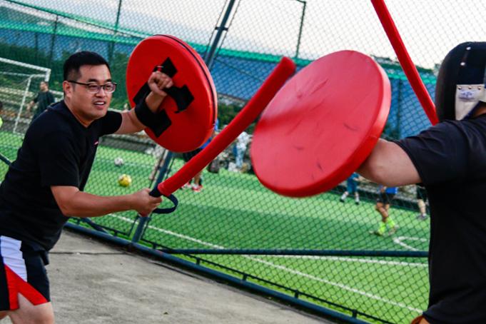 穿上甲胄,戴上面罩,“刀剑”碰撞发出的“砰砰”声在训练场上此起彼伏,这不是发生在影视剧里的打斗场面,而是在浦东碧云星空球场全甲格斗的训练场上。