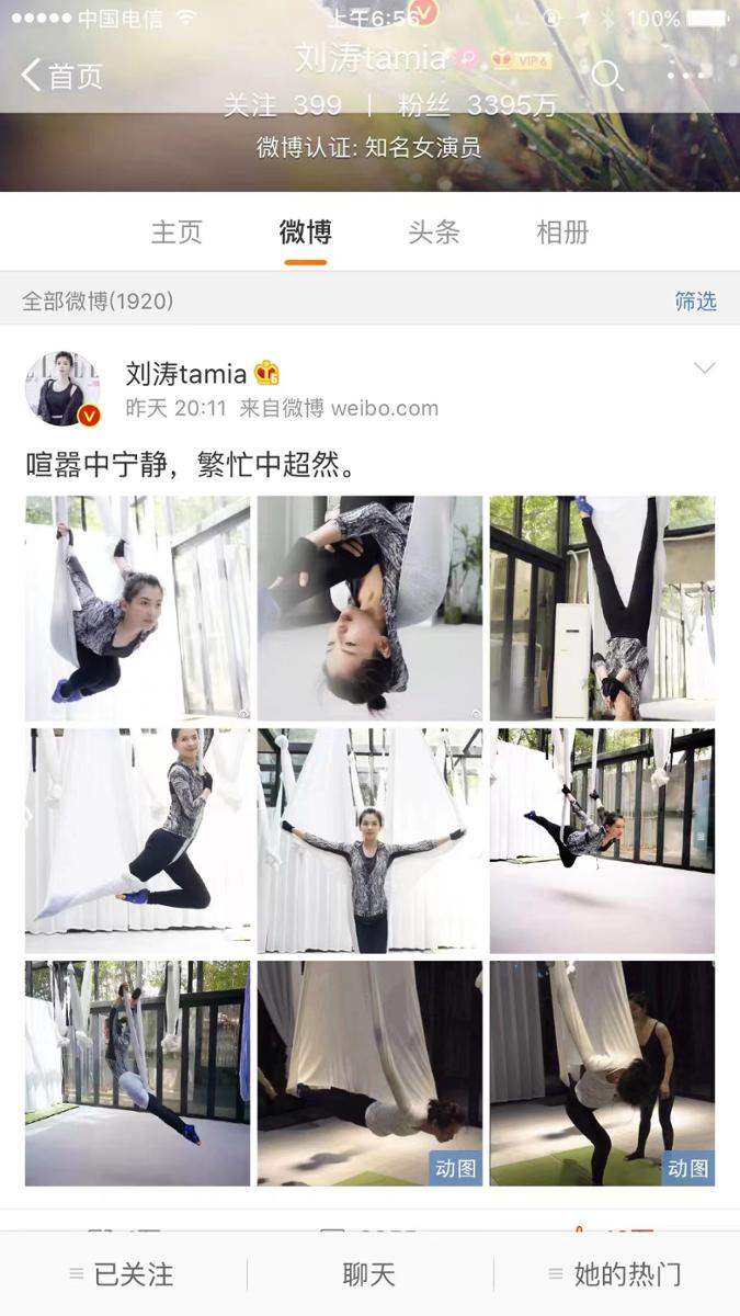 (演员刘涛是空中瑜伽的忠实爱好者)