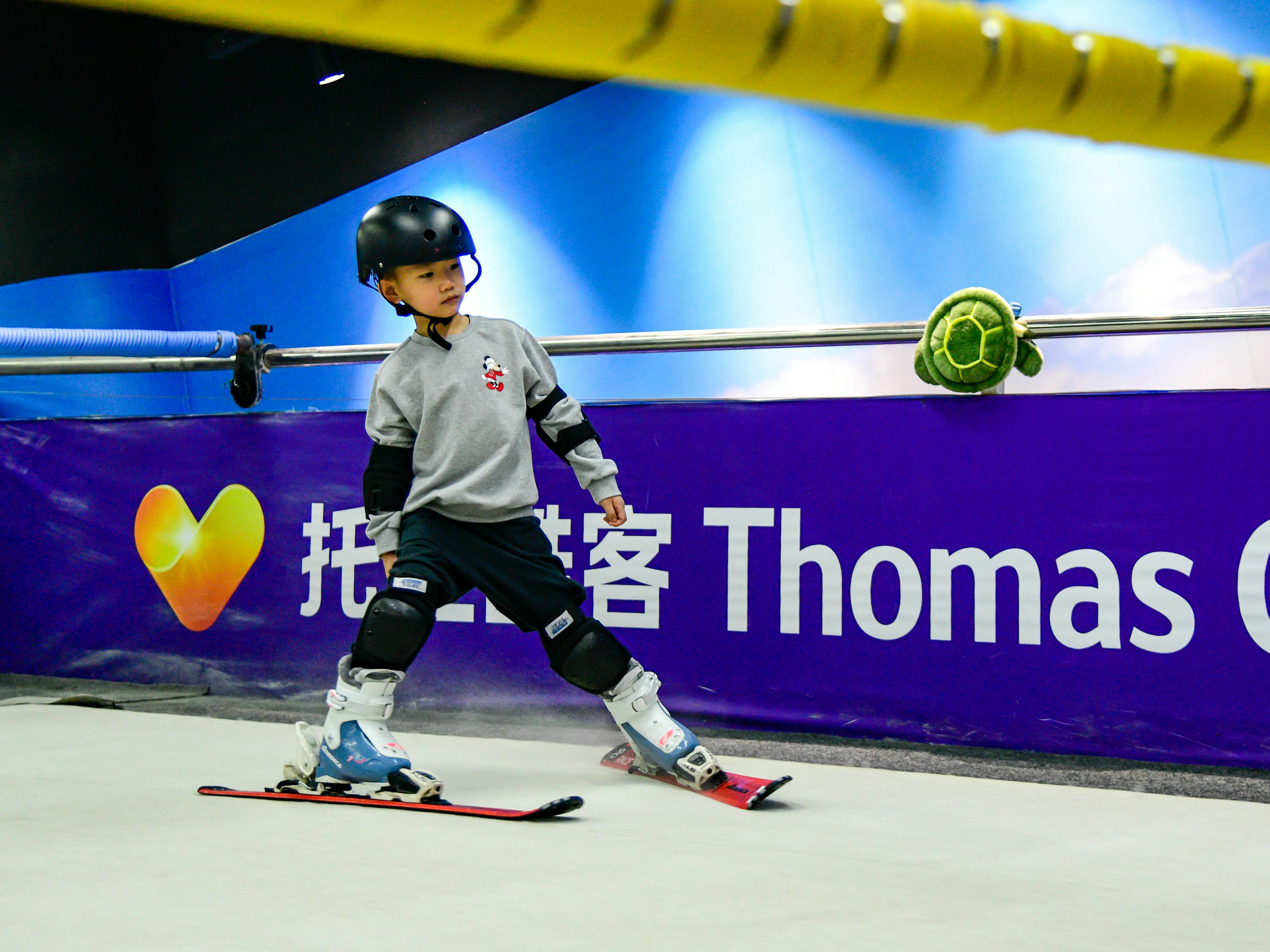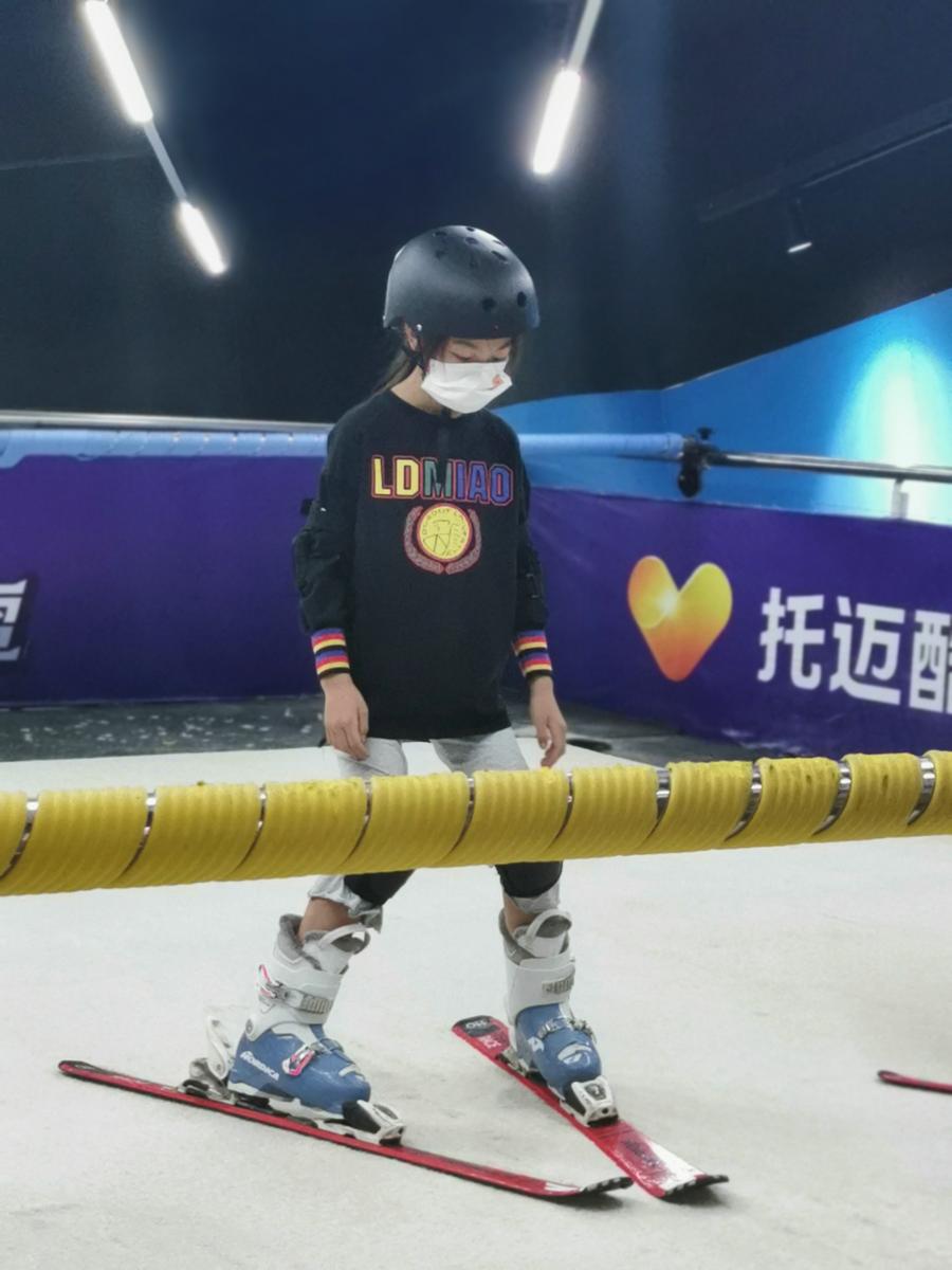 作为滑雪爱好者,妈妈也曾带孩子去过长白山、安吉等地的滑雪场滑雪。她表示,小朋友已经坚持了一年多,每周要上两次课,“选择室内滑雪,主要就是考虑到其天气影响小、也更安全,滑雪机周边有抓杆,又有教练全程指导,孩子受伤概率会低很多。通过室内滑雪打下扎实基础后,也能帮助孩子在户外雪场更好地训练。”