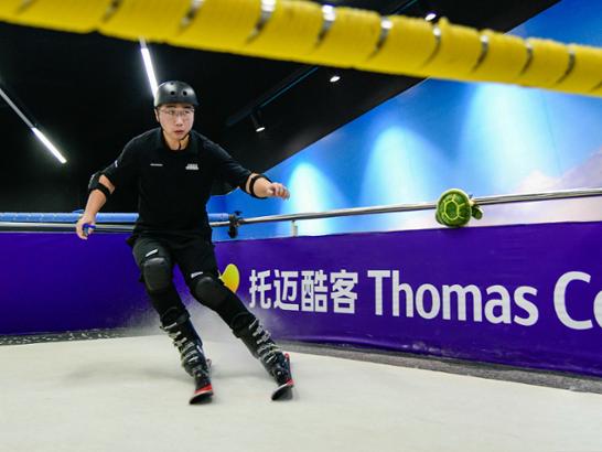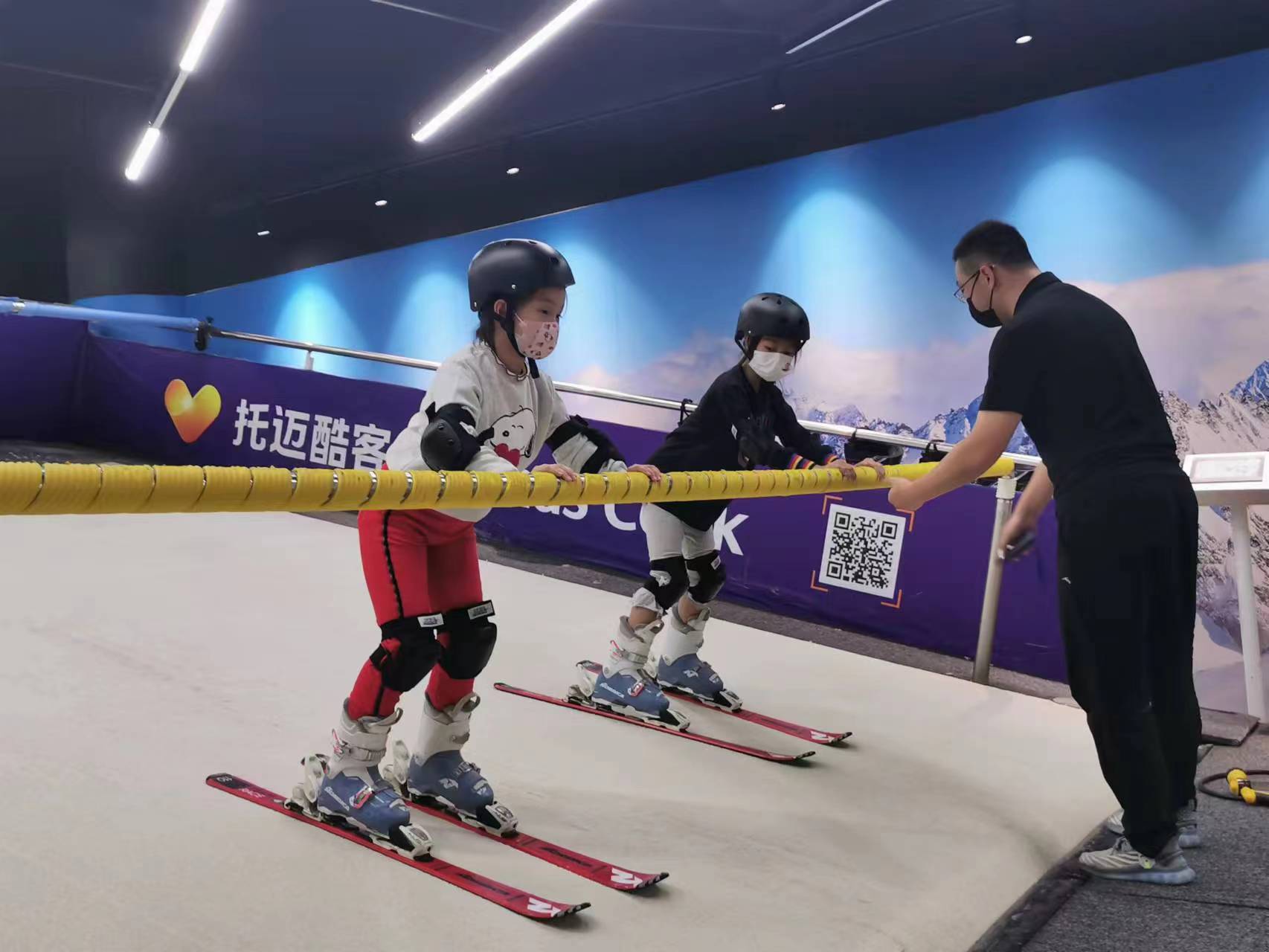 记者到店采访时,就读于幼儿园大班的6岁小男孩刘奕帆正踩着双板,在雪毯上滑行,神情专注,动作熟练,律动自然。刘奕帆的妈妈告诉记者,“滑雪可以让孩子加强体育锻炼,帮助他在成长过程中建立自信心。”