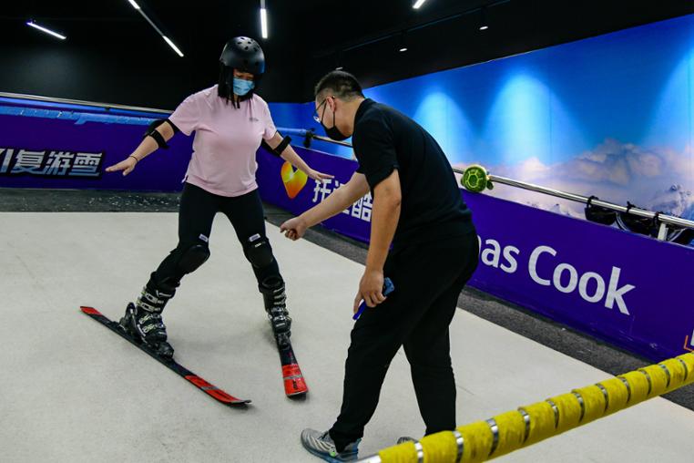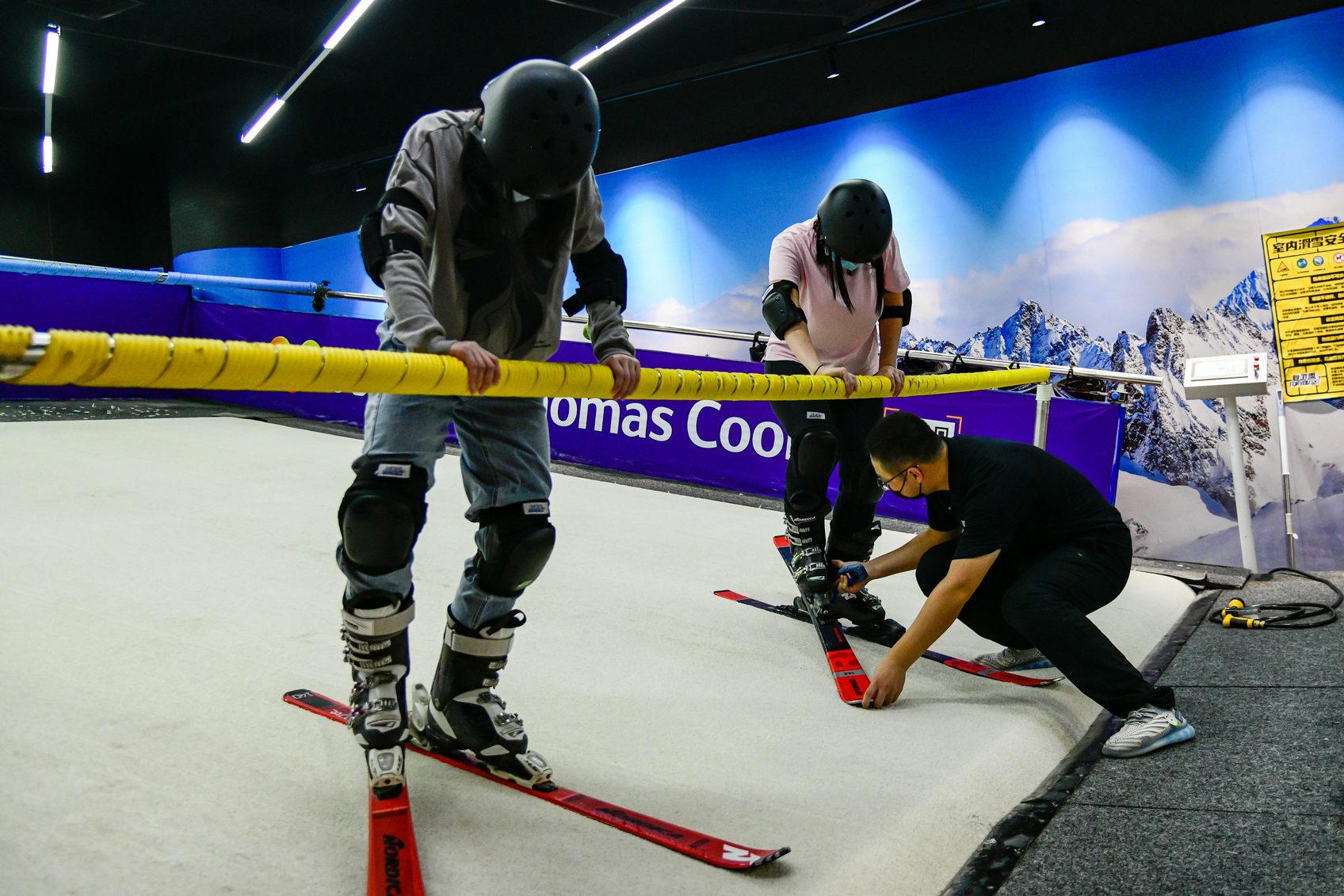 一家室内滑雪店的负责人告诉记者,周末两天从早10点到晚10点,每一时间段的课程都会被约满,下到3岁孩童,上到50多岁的中年人,都会前去尝试。