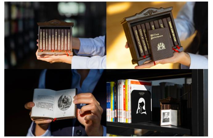 表演艺术《永恒的莎士比亚展》则重点介绍了莎翁所创作的悲剧、喜剧、历史剧、传奇剧中的4部代表作品,并进行相关的戏剧展映,你可以在展览中央的屏幕上欣赏“皇家莎士比亚剧团”和“莎士比亚环球剧院”出品的莎剧影像,在《威尼斯商人》等6部经典舞台戏剧中体会当代导演对莎剧的全新诠释。为了配合本次展览,展区筛选了馆藏各类与莎士比亚相关的出版物进行集中陈列,2部别具特色并饱含历史纪念意义的作品也在其中特别亮相。